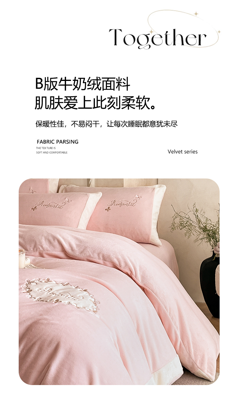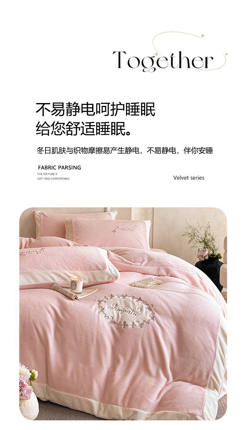 (总)子曰 2025新款雕花加厚牛奶绒宽边工艺款四件套-小香风,小香风-咖,小香风-粉,小香风-绿,小香风-米白,小香风-紫