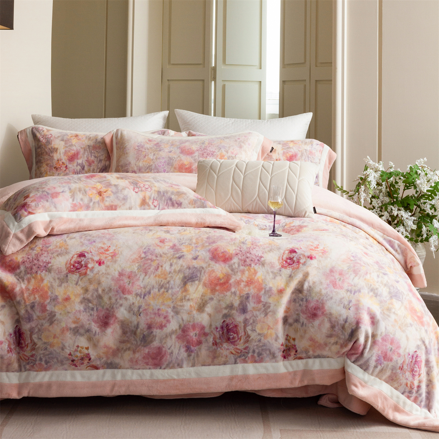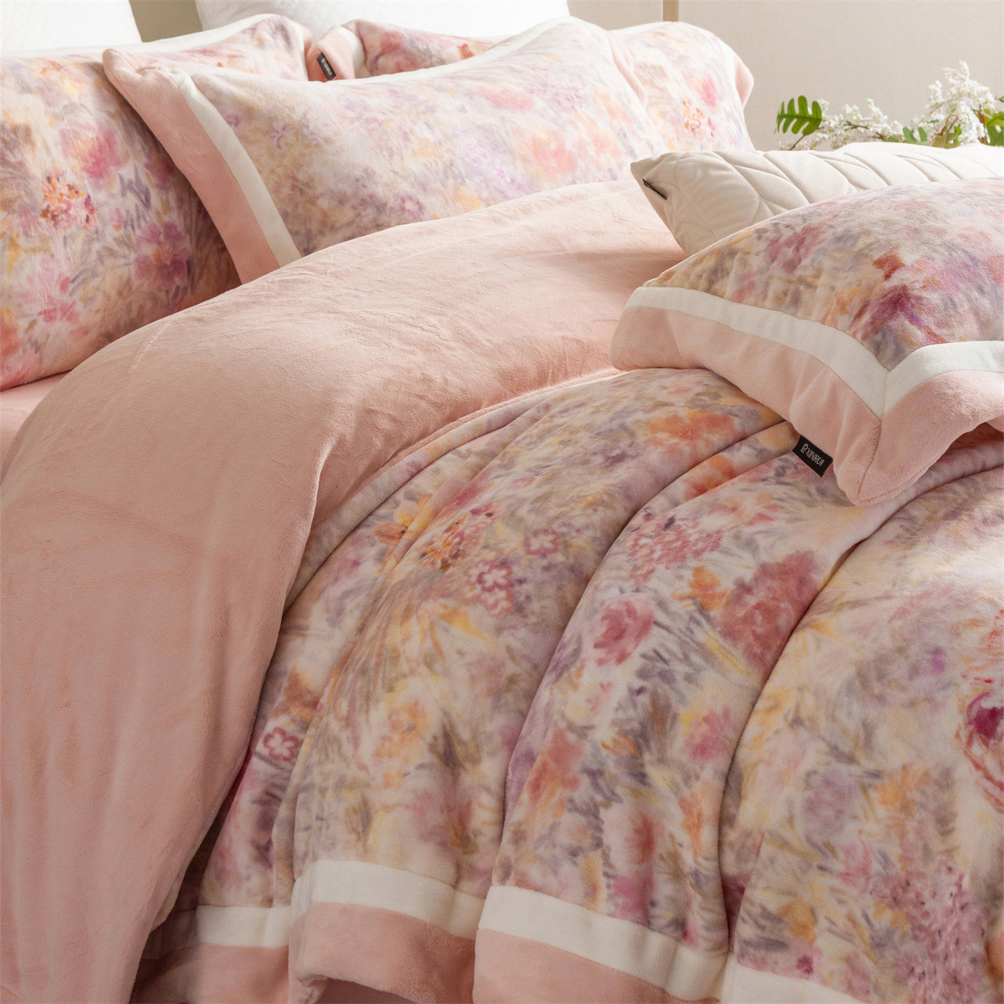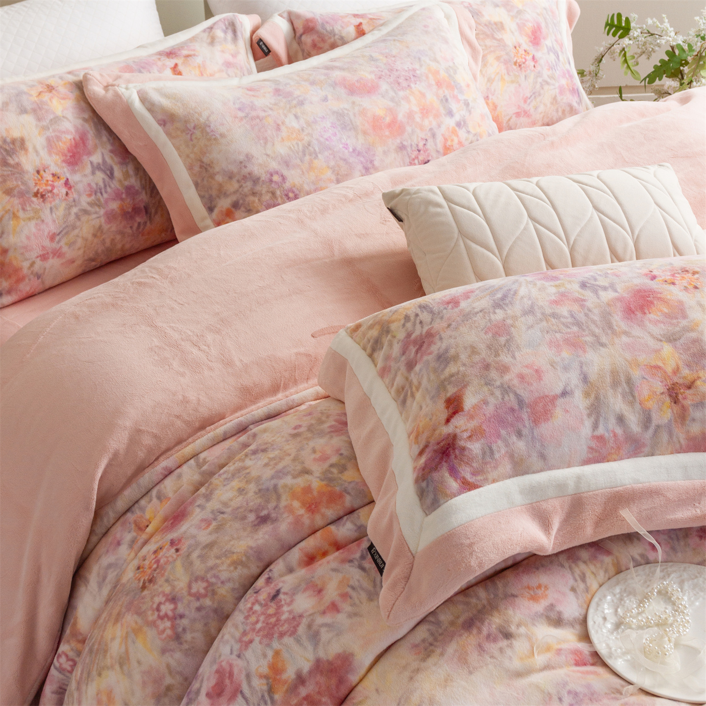 (总)馨蕊家居 2025新款意大利进口高精密刺绣拼角工艺秋冬法式高奢雪貂绒系列-绒雪芙 会员-10【券后控价358/378】,绒雪芙-奶咖,绒雪芙-蔷薇粉,绒雪芙-婉若紫,绒雪芙-月光白