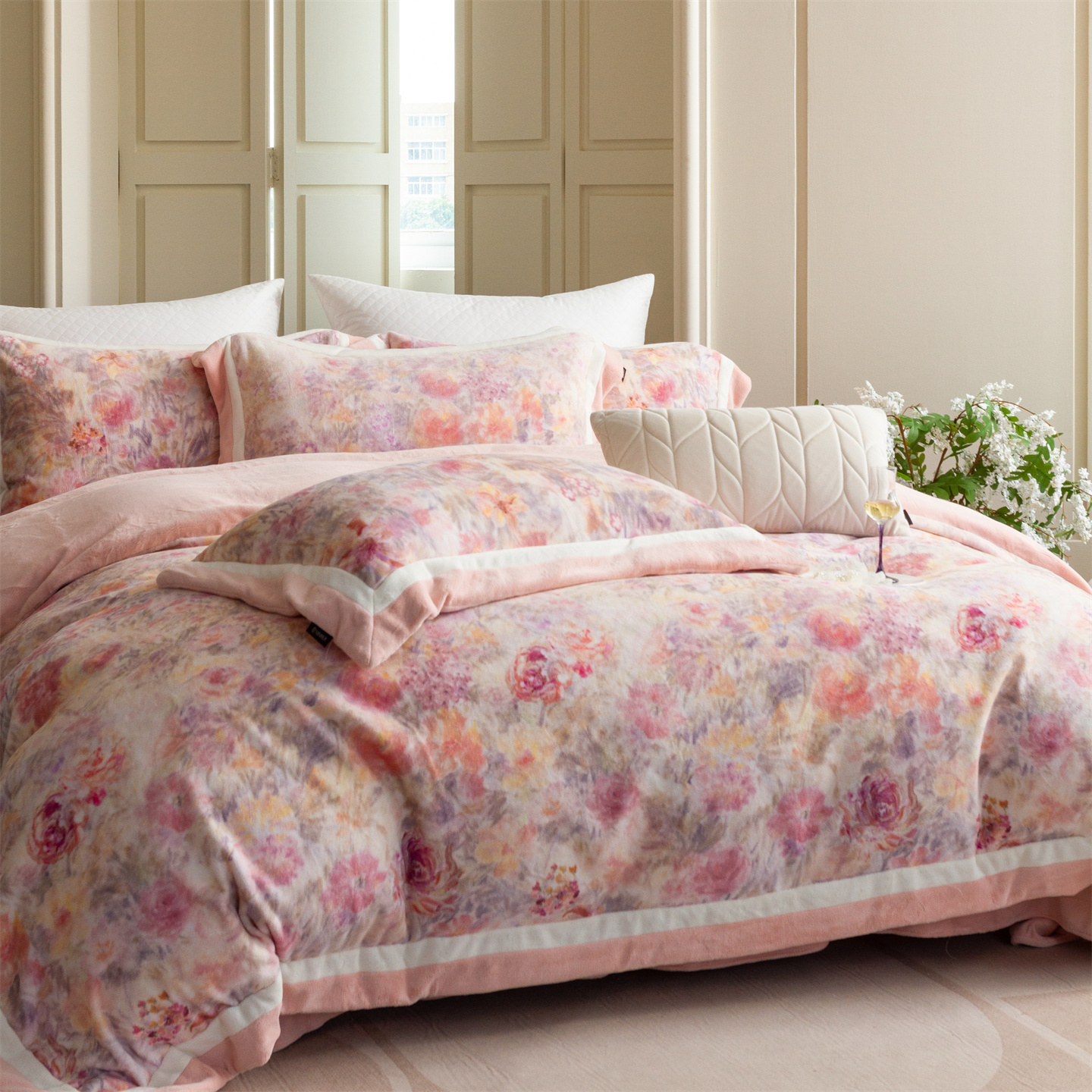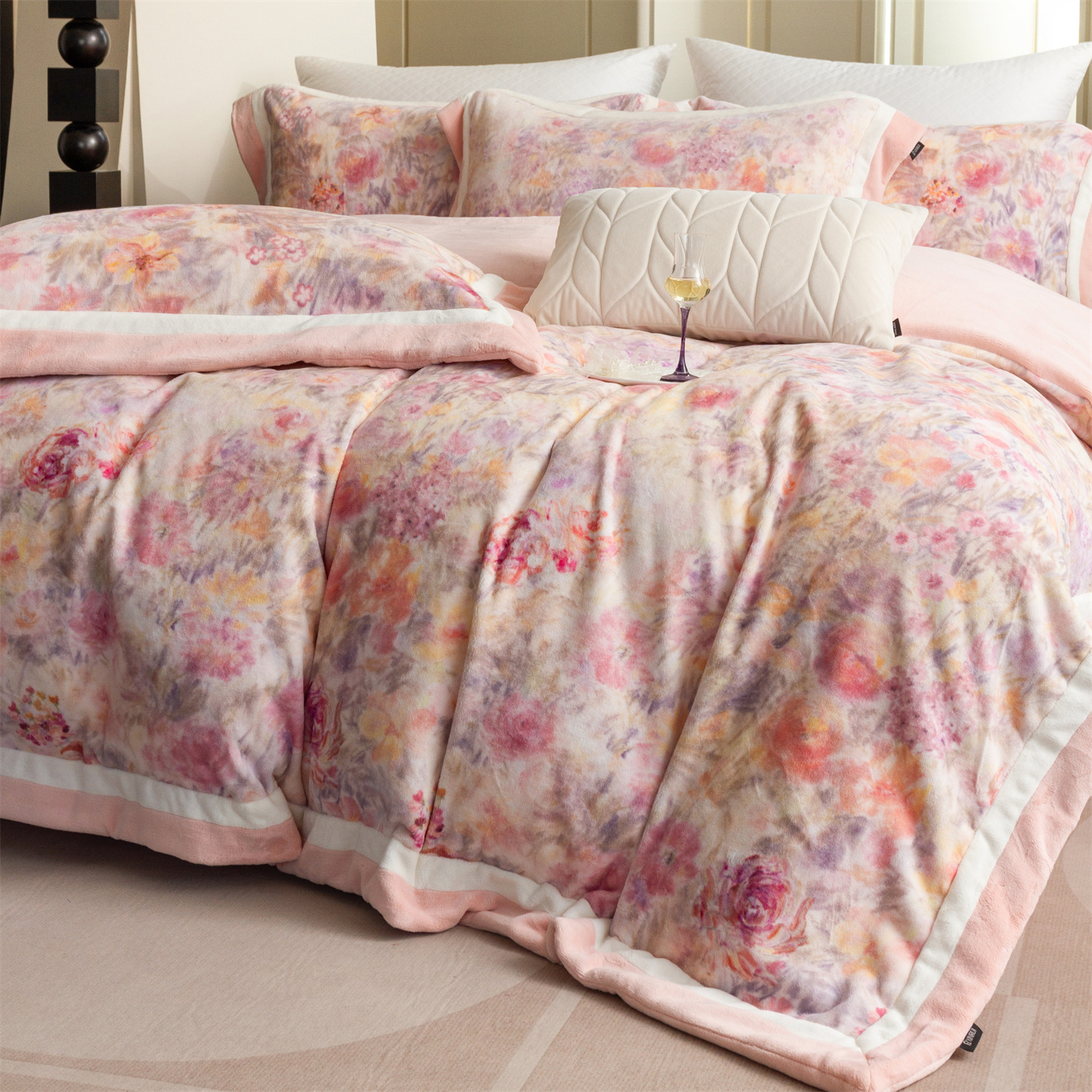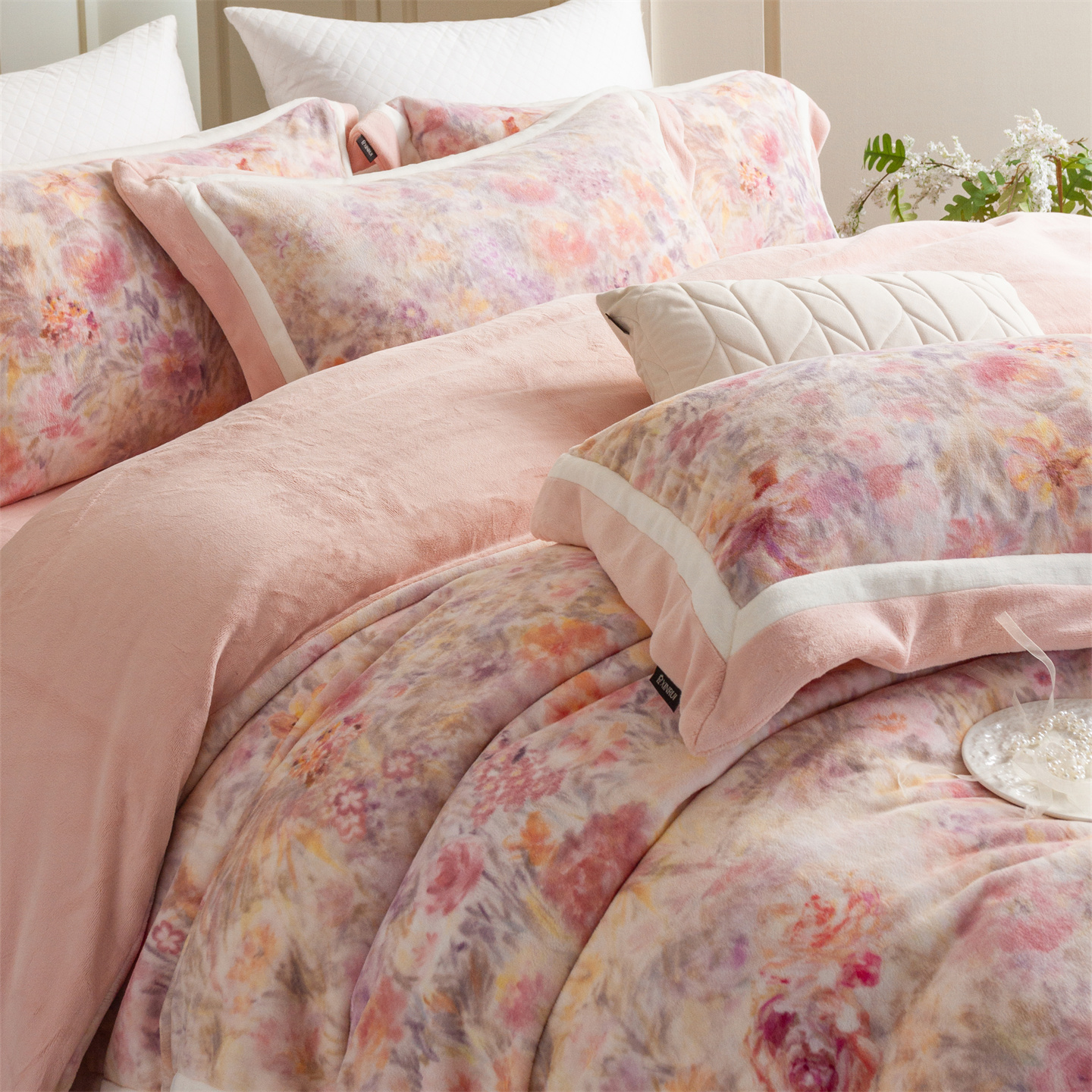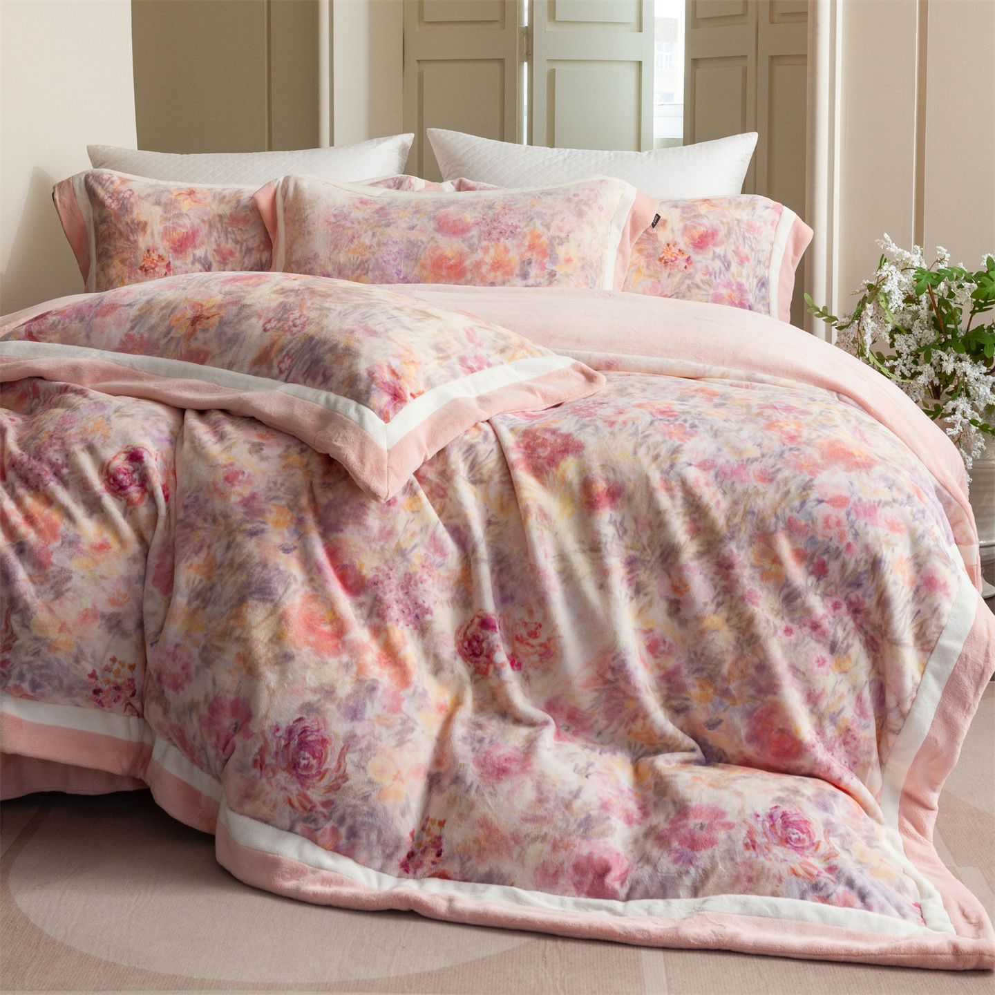 (总)馨蕊家居 2025新款意大利进口高精密刺绣拼角工艺秋冬法式高奢雪貂绒系列-绒雪芙 会员-10【券后控价358/378】,绒雪芙-奶咖,绒雪芙-蔷薇粉,绒雪芙-婉若紫,绒雪芙-月光白