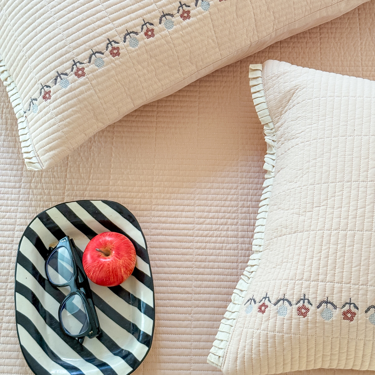 (总)汇庭 2025秋冬新款麻三月床盖三件套系列,黑点点,花絮粉,锦绣,梨花雨,青舍,三月,苏梨士,夜曲,组合