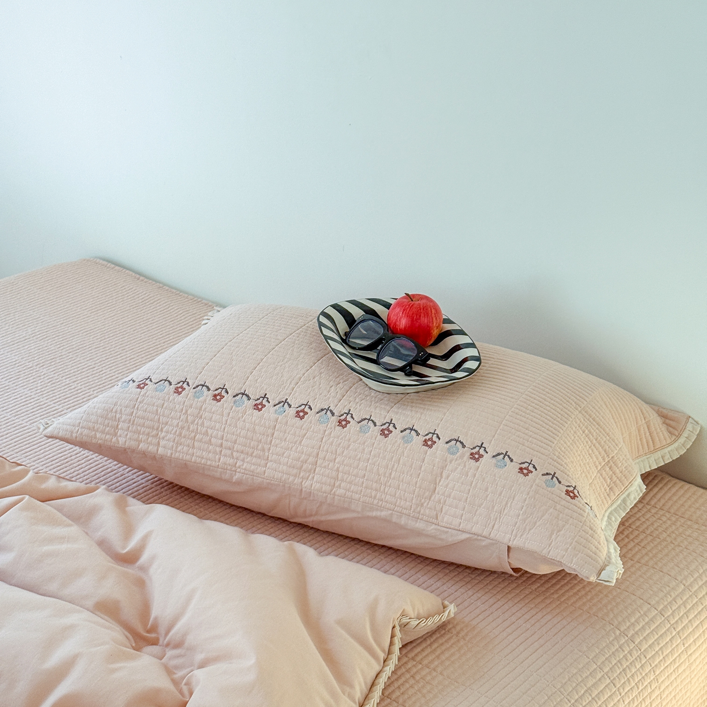 (总)汇庭 2025新款秋冬胖胖樱桃春秋被+樱桃菲菲床盖三件套,组合图下单仅供展示不可下单,粉色,绿色,米色