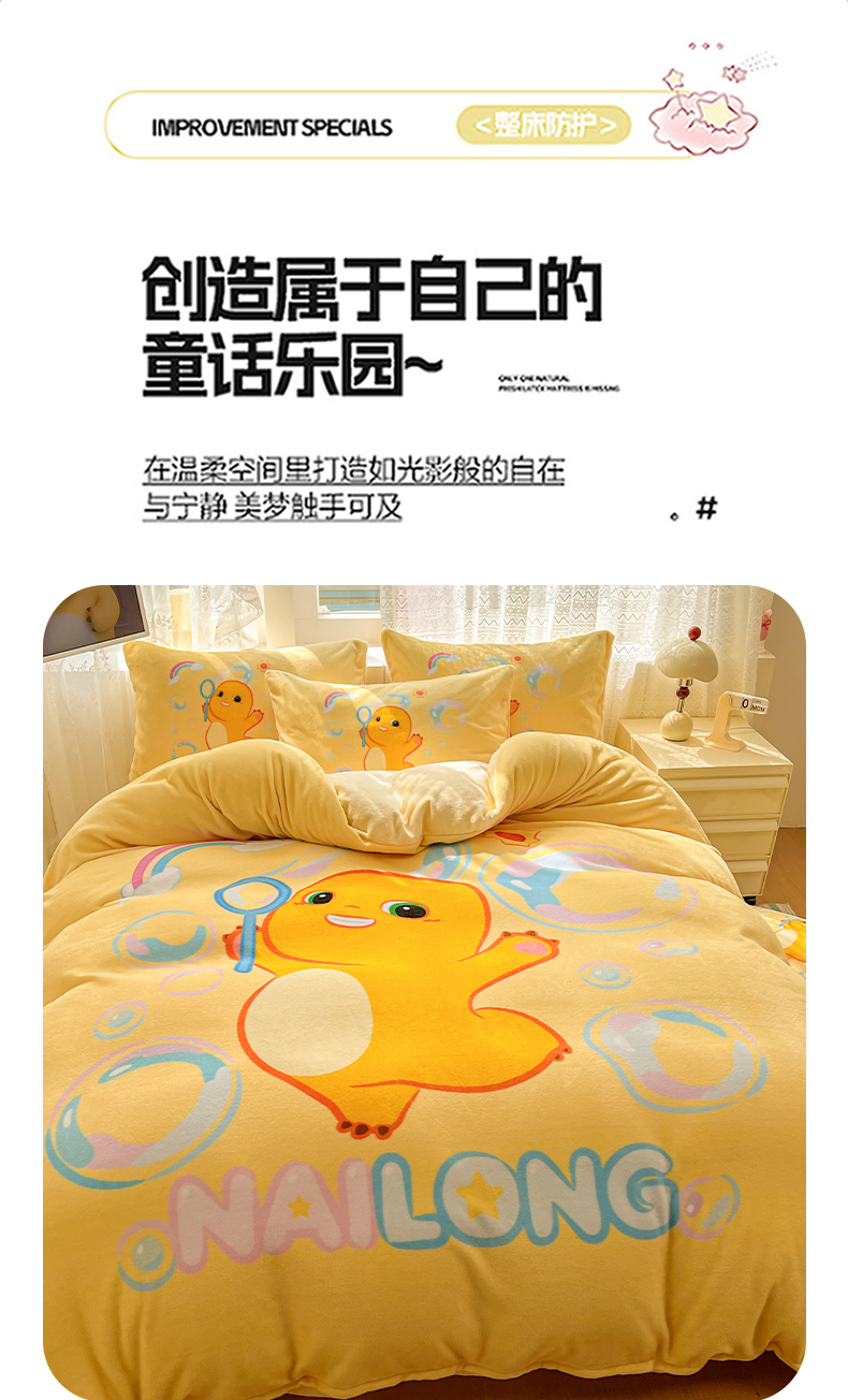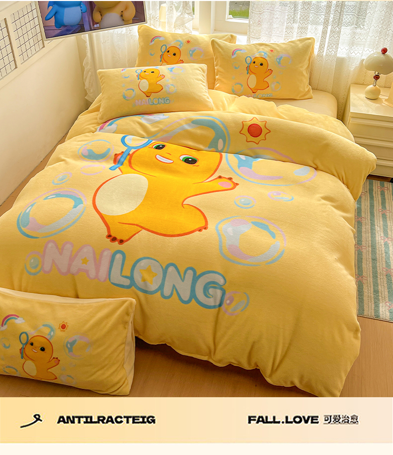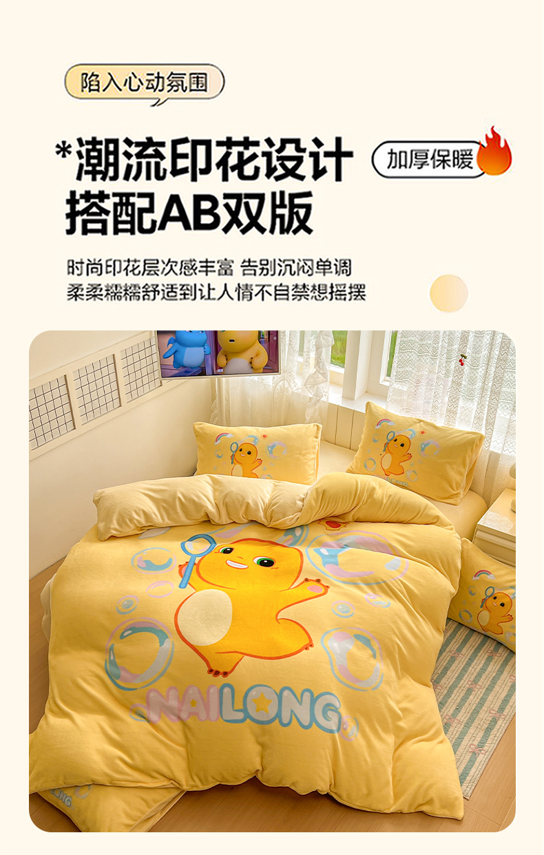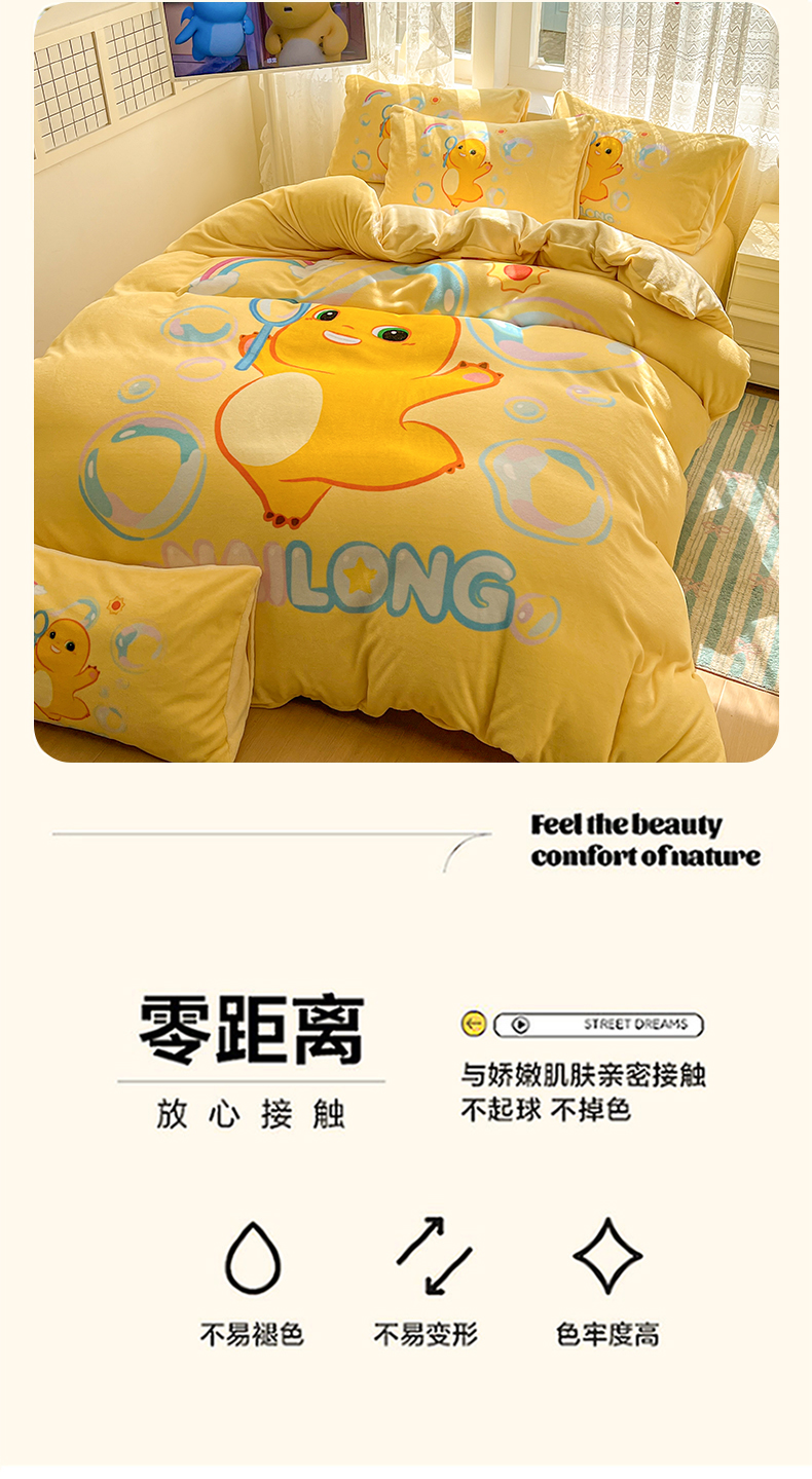 当前位置: 91家纺网 > 商品网购 > 床品套件 > 四件套 > 牛奶绒四件套 > 浩诚 2025秋冬新款高克重牛奶绒大版卡通四件套 小奶龙
