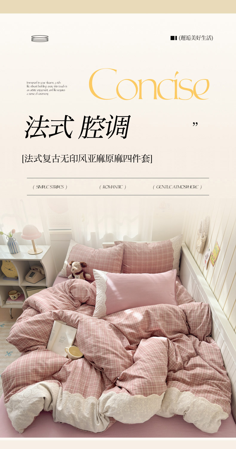 当前位置: 91家纺网 > 商品网购 > 床品套件 > 四件套 > 其它四件套 > 上尚居 2025新款高克重法式复古无印风亚麻原麻四件套 格韵-粉