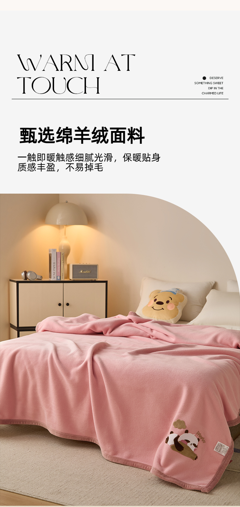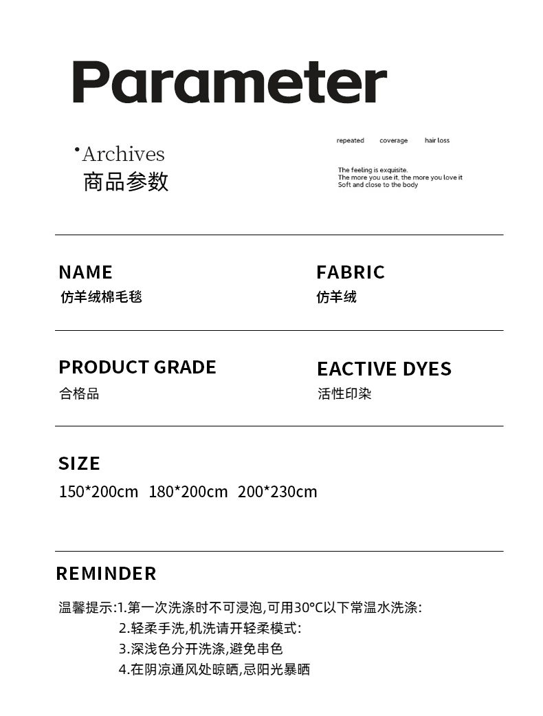 商品名称:(总)皇寝世家家居 2025新款仿绵羊绒毛毯兔绒毯办公室午睡毯子毛巾被 四季空调沙发盖毯