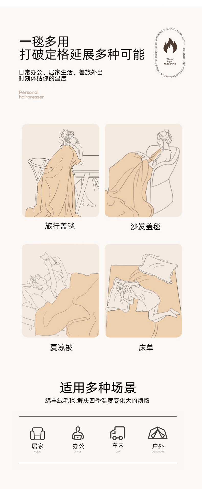 (总)皇寝世家家居 2025新款仿绵羊绒毛毯兔绒毯办公室午睡毯子毛巾被 四季空调沙发盖毯