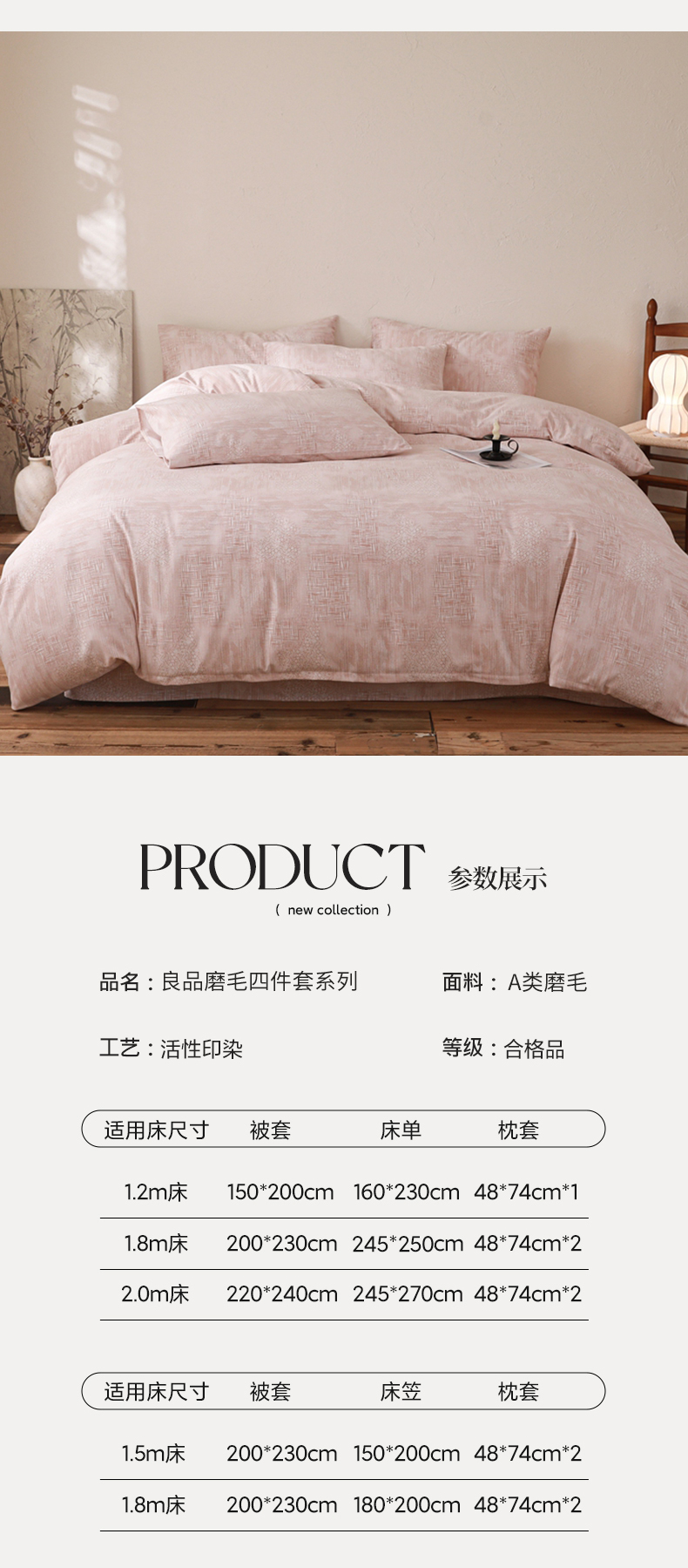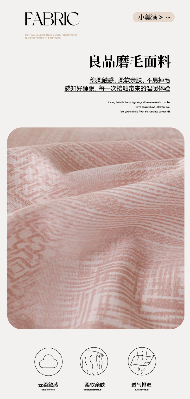 当前位置: 91家纺网 > 商品网购 > 床品套件 > 四件套 > 普通磨毛四件套 > 小叮当家纺仓储工厂店 (买家秀 爆款花型 不断货)2025秋冬新款亲肤舒适良品磨毛四件套 雾影粉