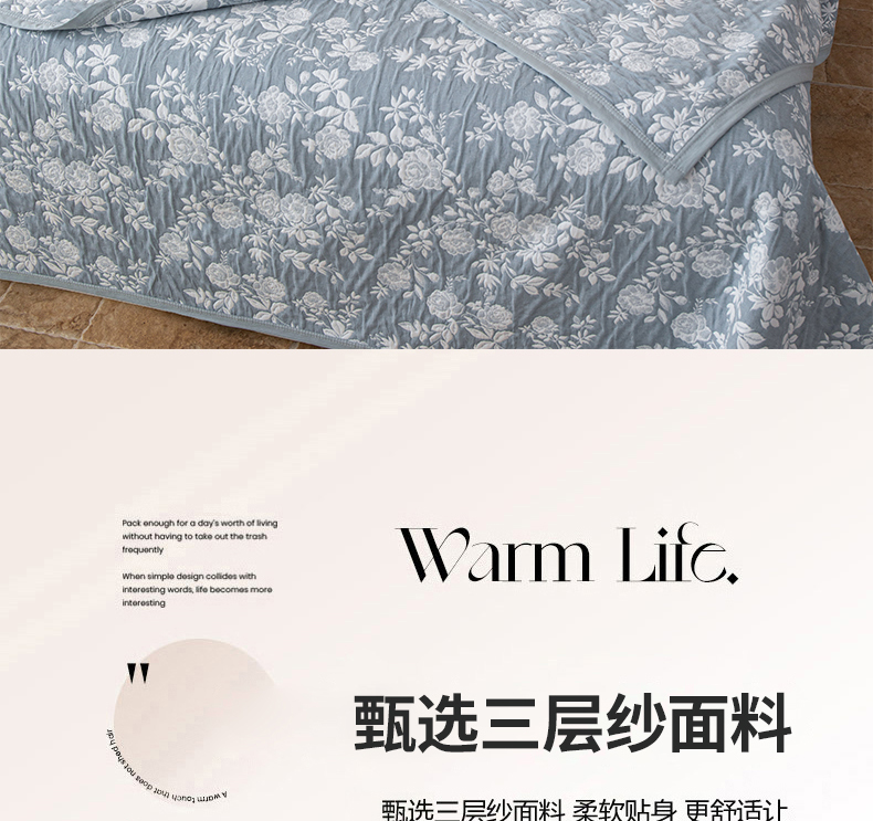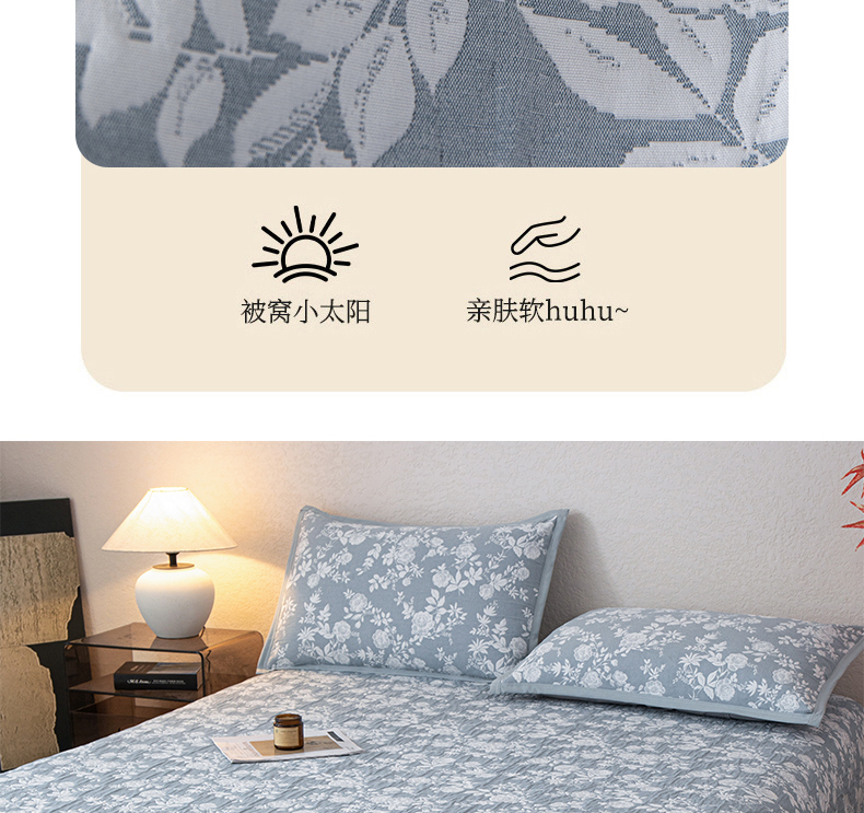 • 91家纺网 家纺一手货源 找家纺 小叮当家纺仓储工厂店 (买家秀 爆款花型 不断货)2025新款A类三层纱纱布毛巾被单品床盖单件床盖 慕白-碟翅蓝