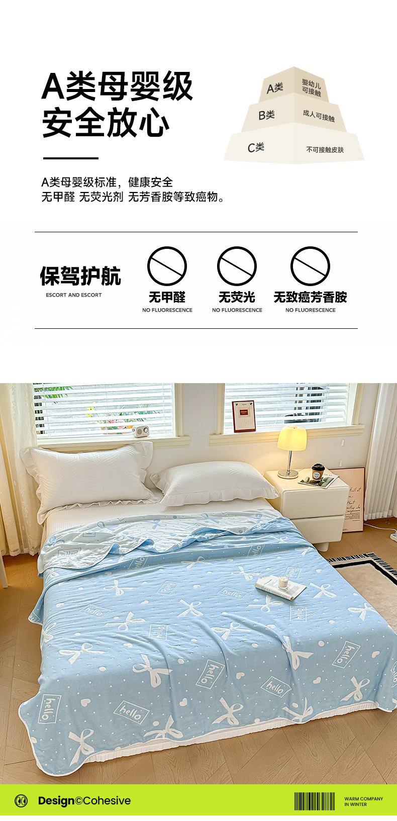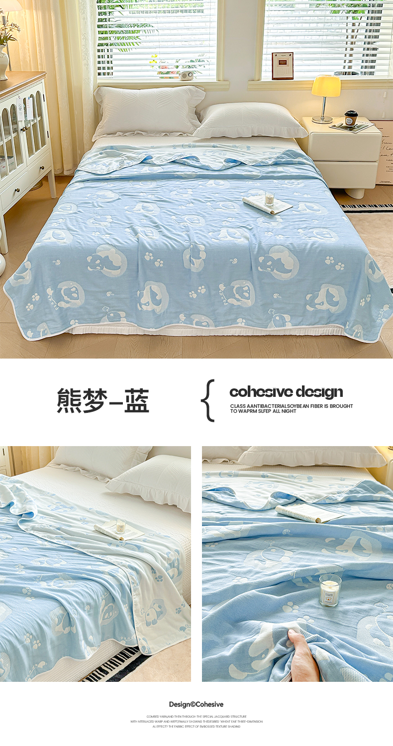 • 91家纺网 家纺一手货源 找家纺 小叮当家纺仓储工厂店 (买家秀 爆款花型 不断货)2025新款全棉六层纱布毛巾被系列 熊梦-蓝