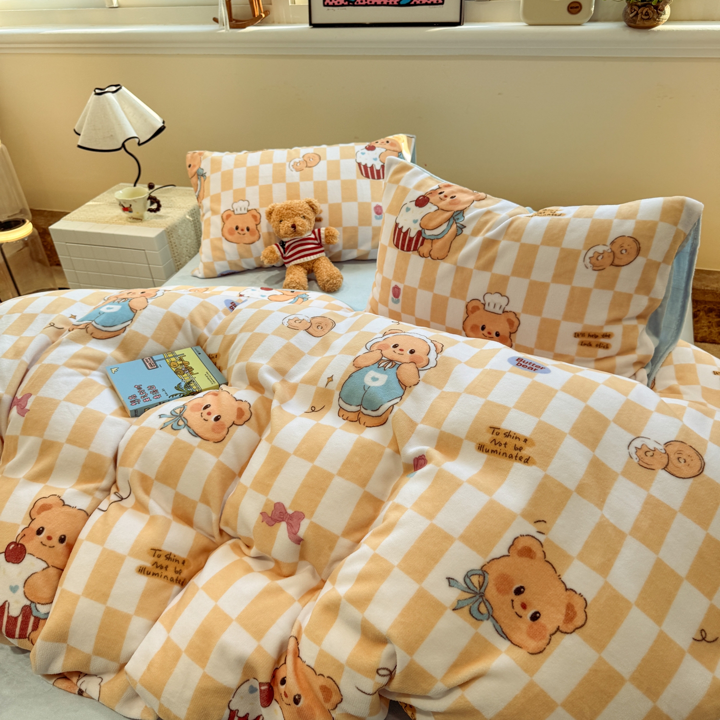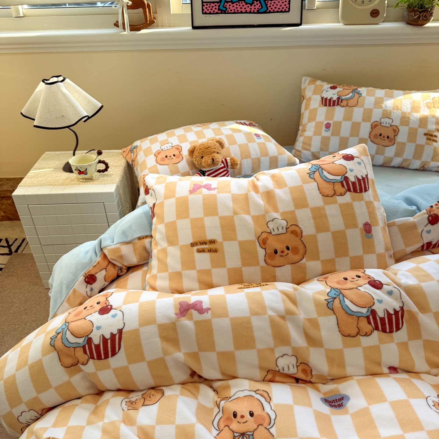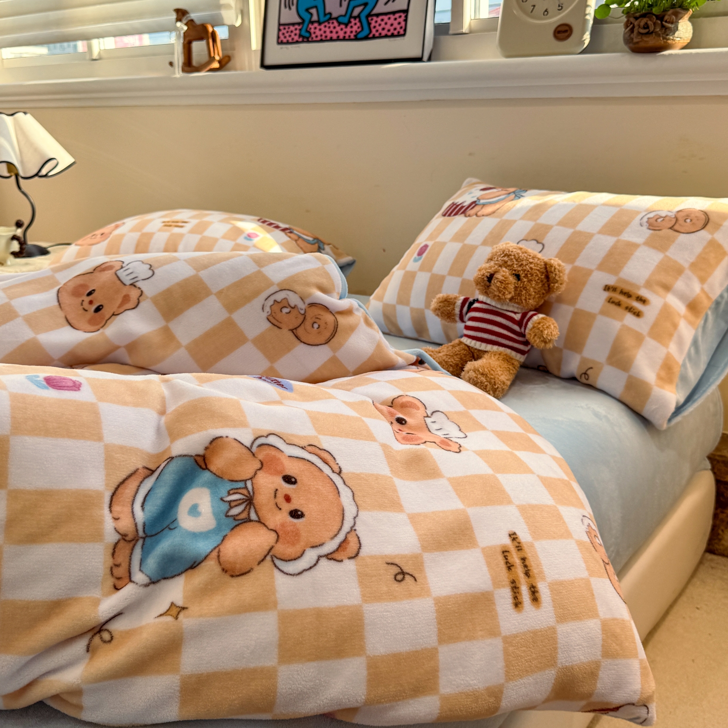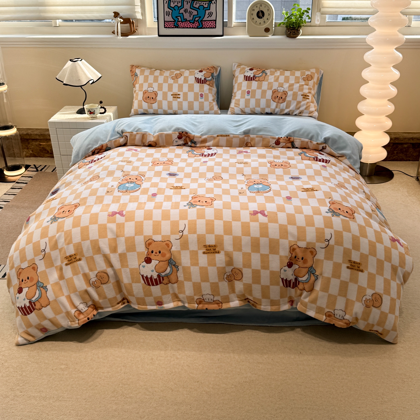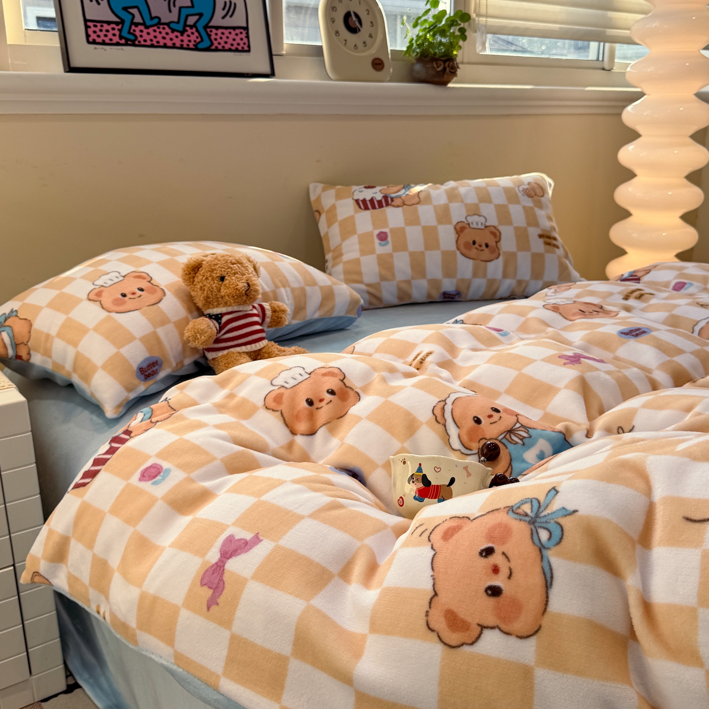 商品名称:呗旺鹿 2025新款A类牛奶绒数码印花卡通小清新四件套(场景一)曲奇小熊