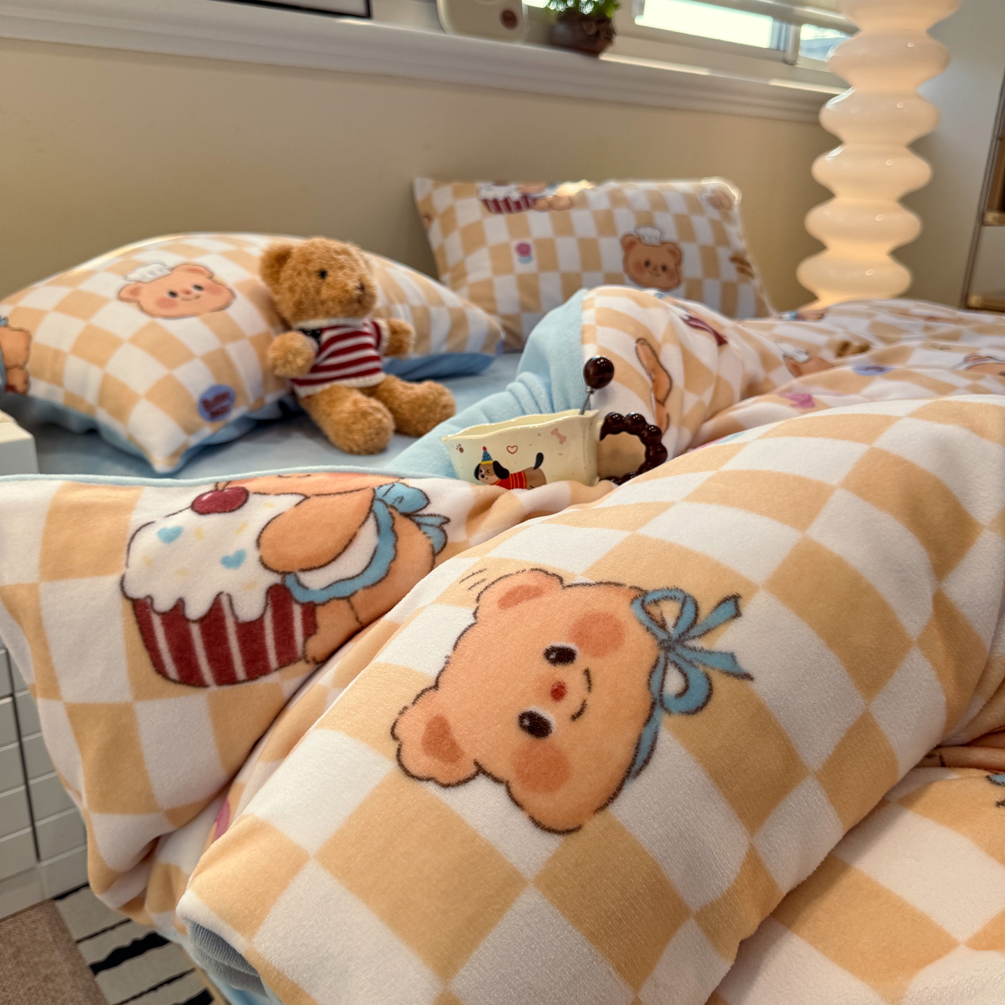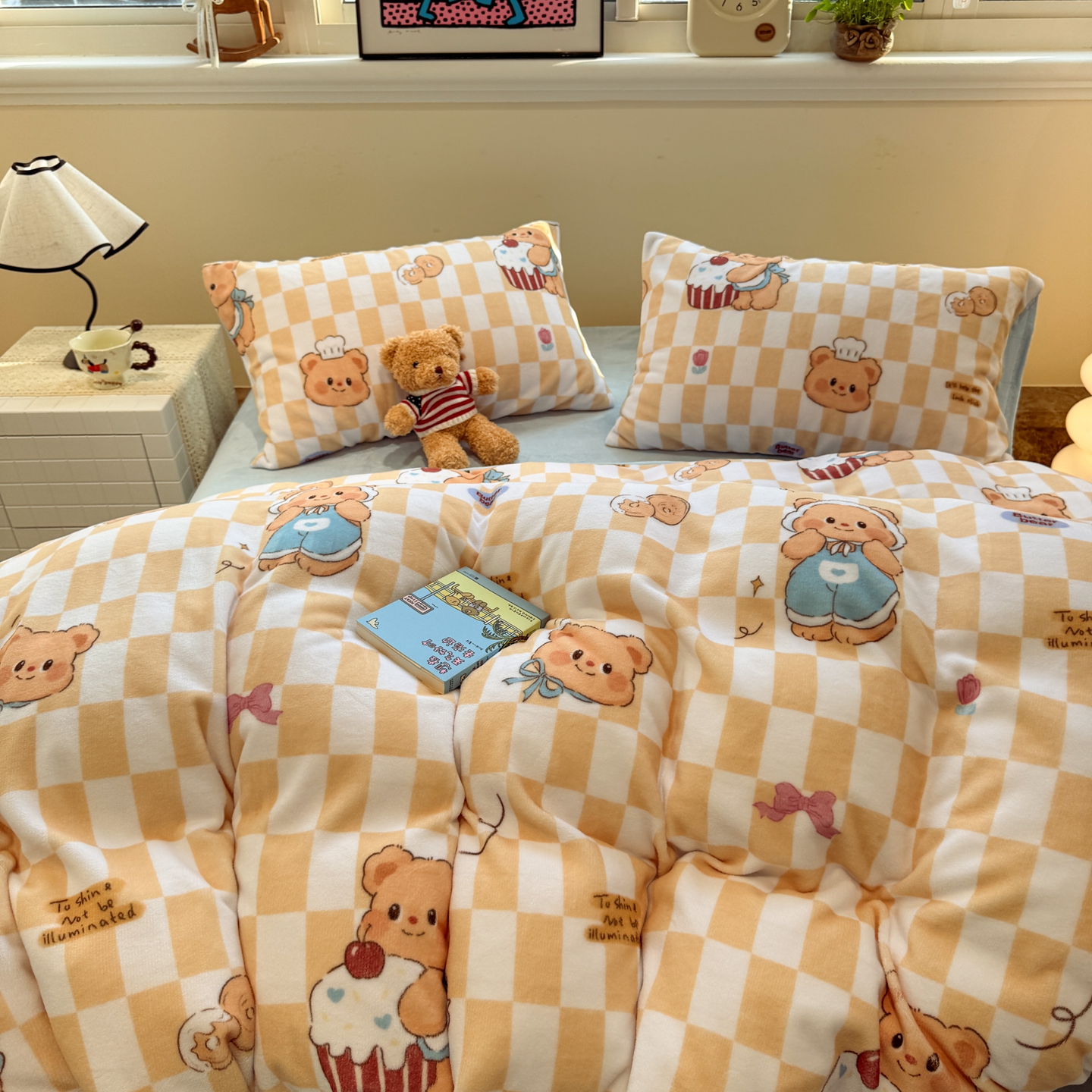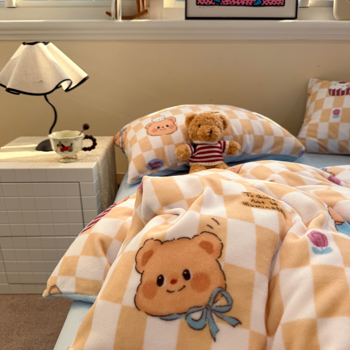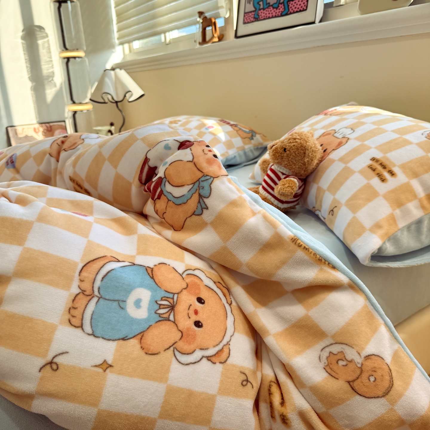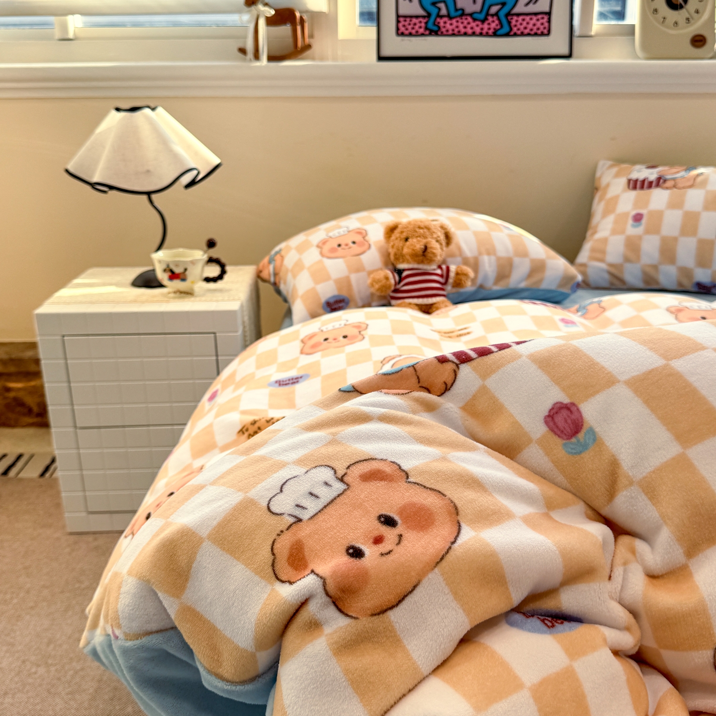 商品名称:呗旺鹿 2025新款A类牛奶绒数码印花卡通小清新四件套(场景一)曲奇小熊
