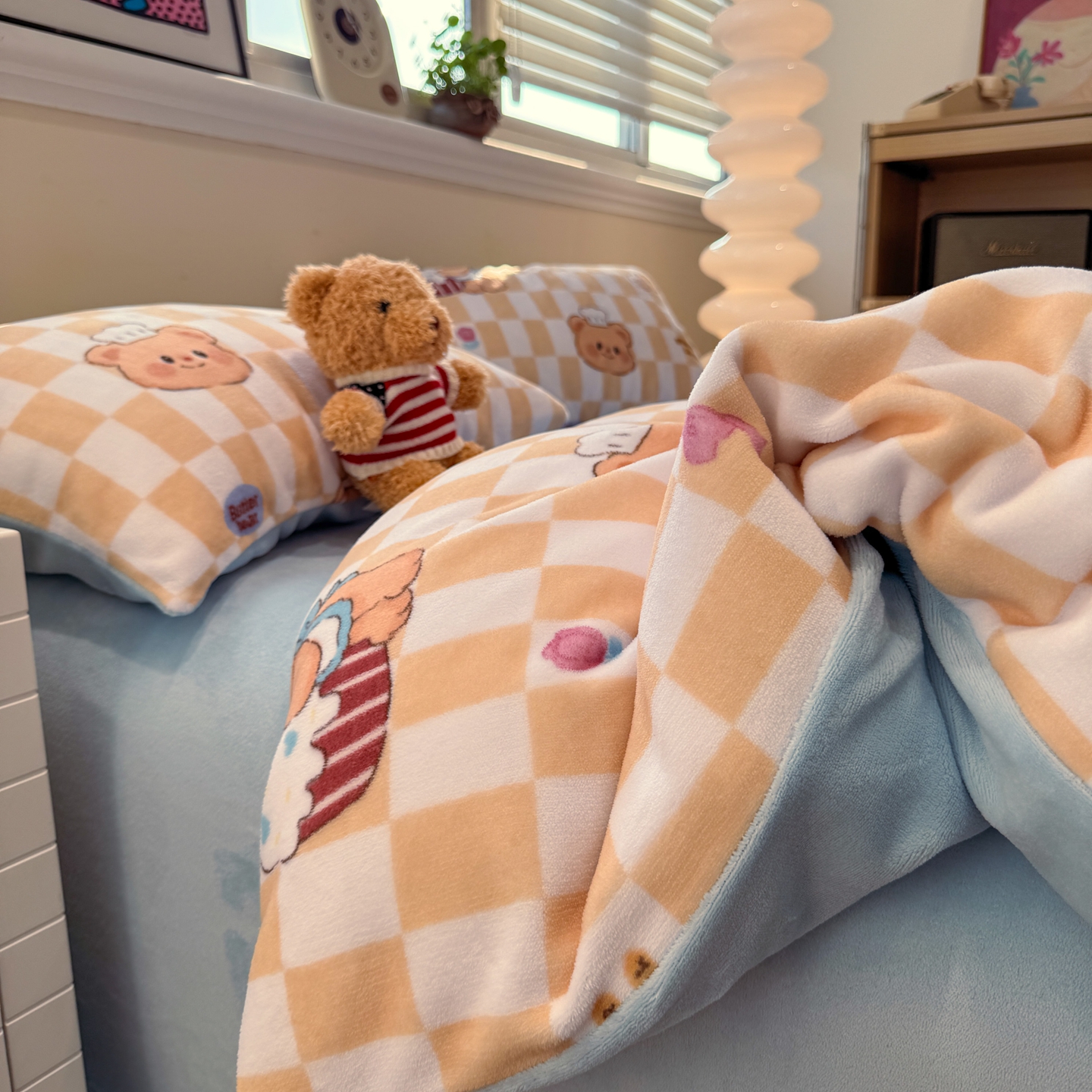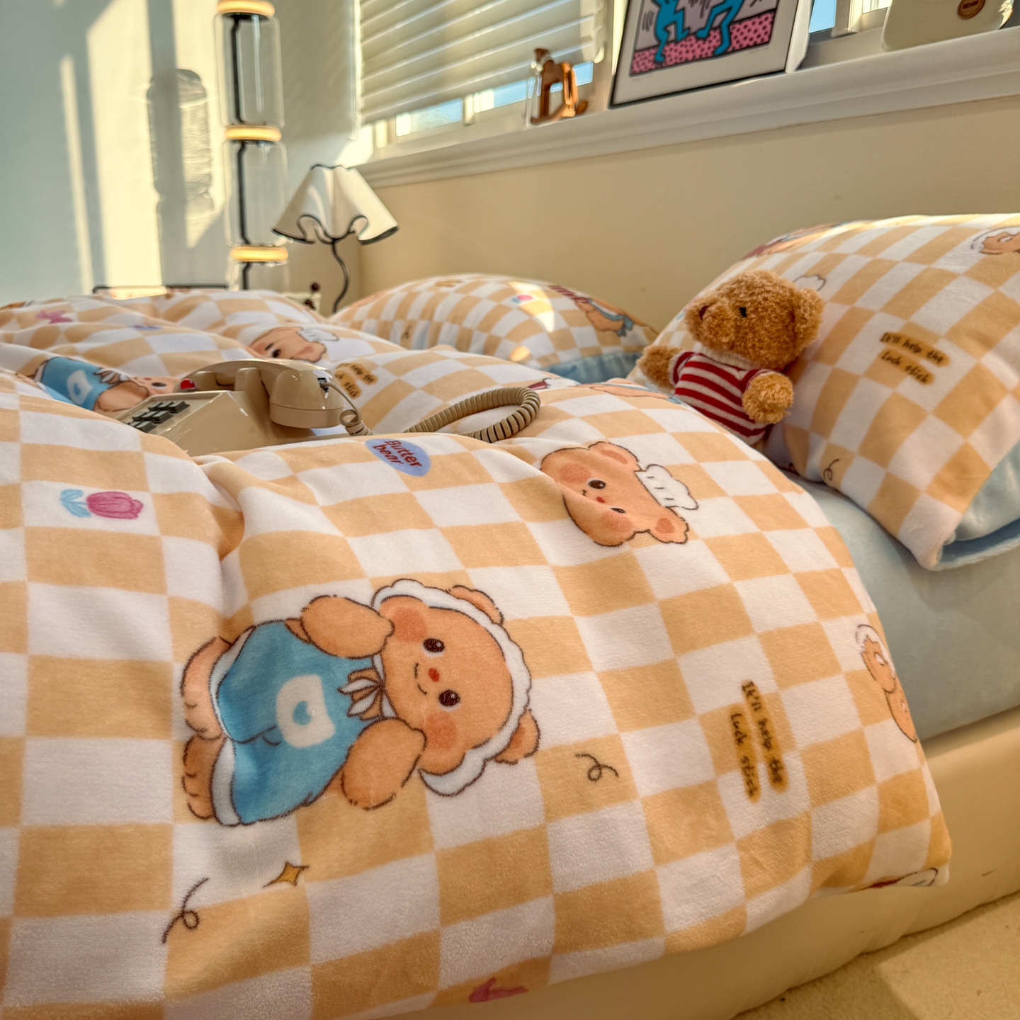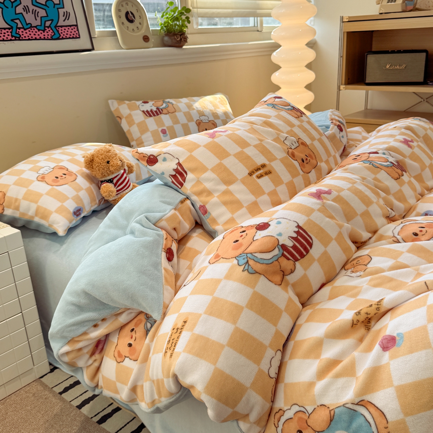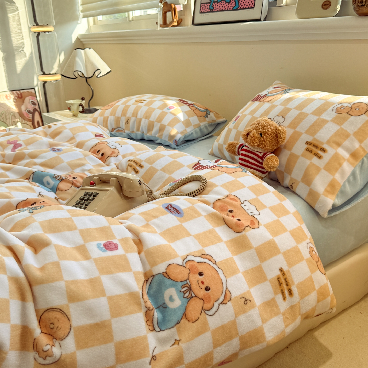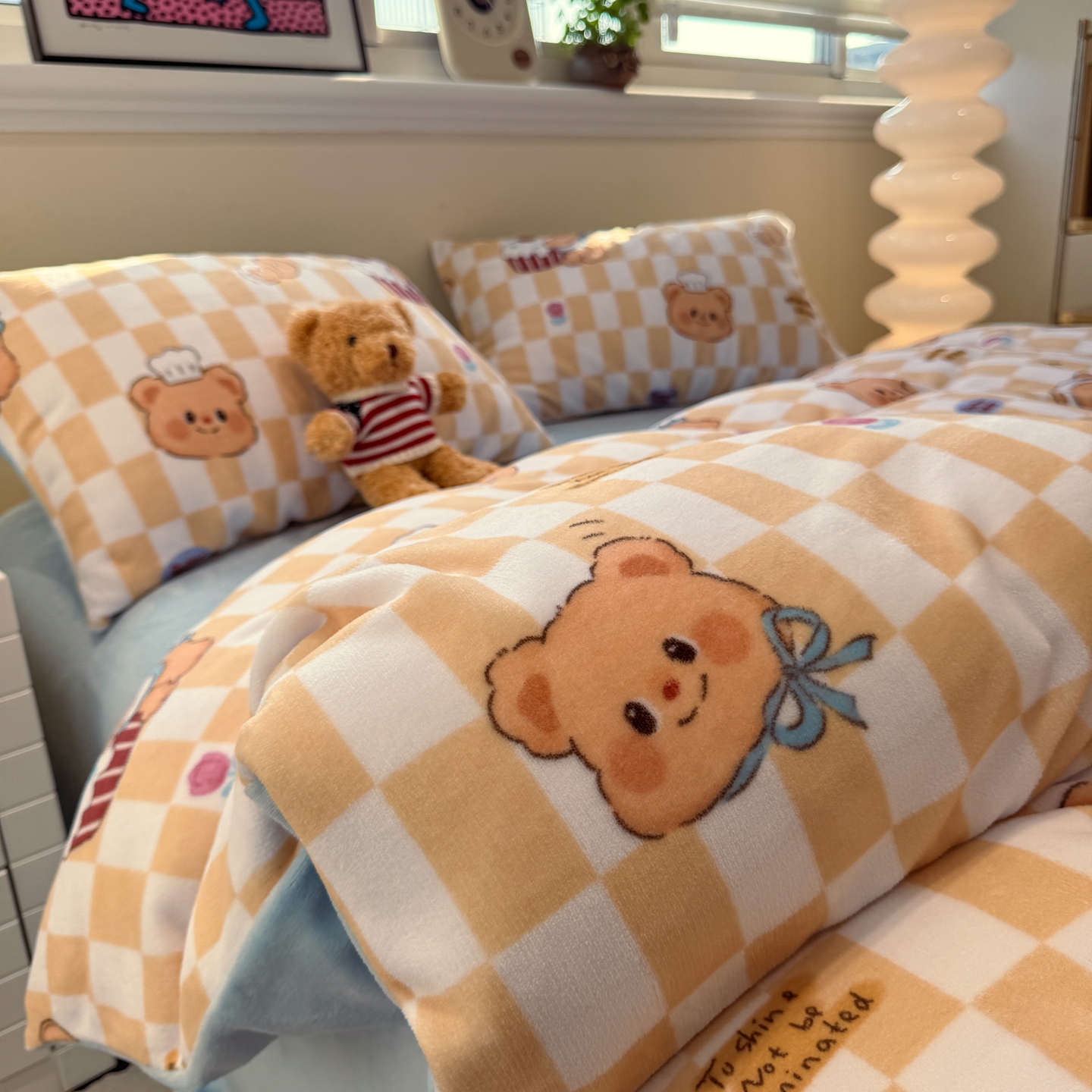 商品名称:呗旺鹿 2025新款A类牛奶绒数码印花卡通小清新四件套(场景一)曲奇小熊