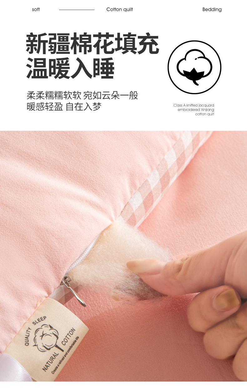 当前位置: 91家纺网 > 商品网购 > 被子 > 冬被 > 爱彼家纺 2025冬季新款A类100%新疆棉花被棉絮春秋被冬被被子被芯 浪漫粉-100%棉花被