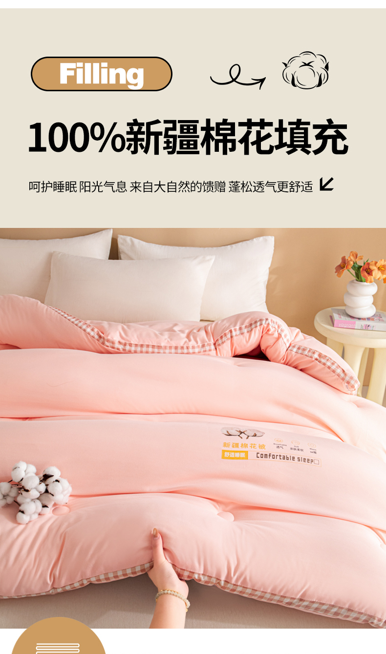 • 91家纺网 家纺一手货源 找家纺 爱彼家纺 2025冬季新款A类100%新疆棉花被棉絮春秋被冬被被子被芯 浪漫粉-100%棉花被