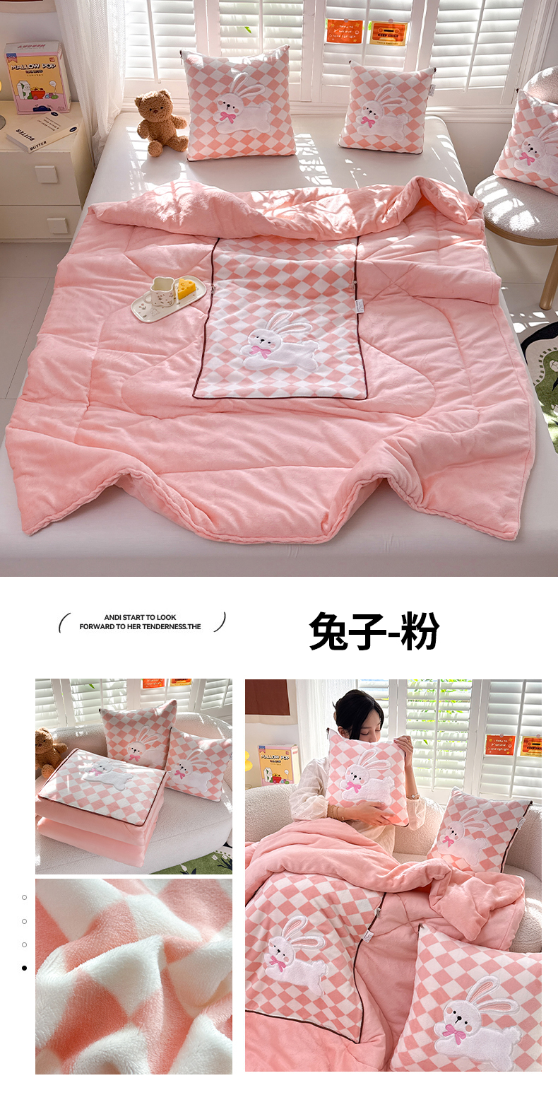 (总)宝马家纺(原梦童画) 2025新款加厚巴黎兔抱枕被,巴黎兔-蓝,巴黎兔-粉,巴黎兔-灰,巴黎兔-咖,组合图
