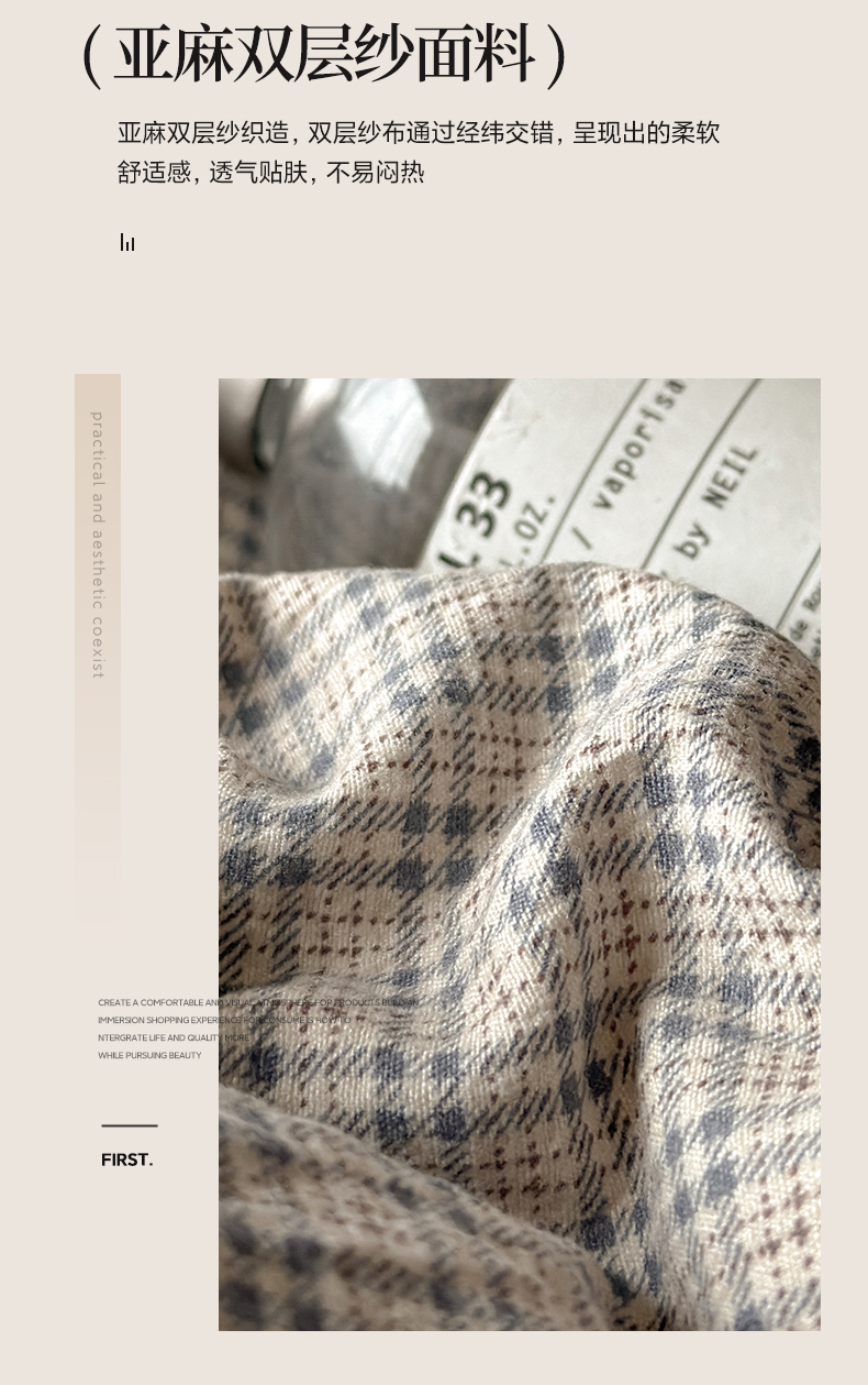 商品名称:(总)遇见家居生活馆 2025新款亚麻双层纱印花四件套-往事