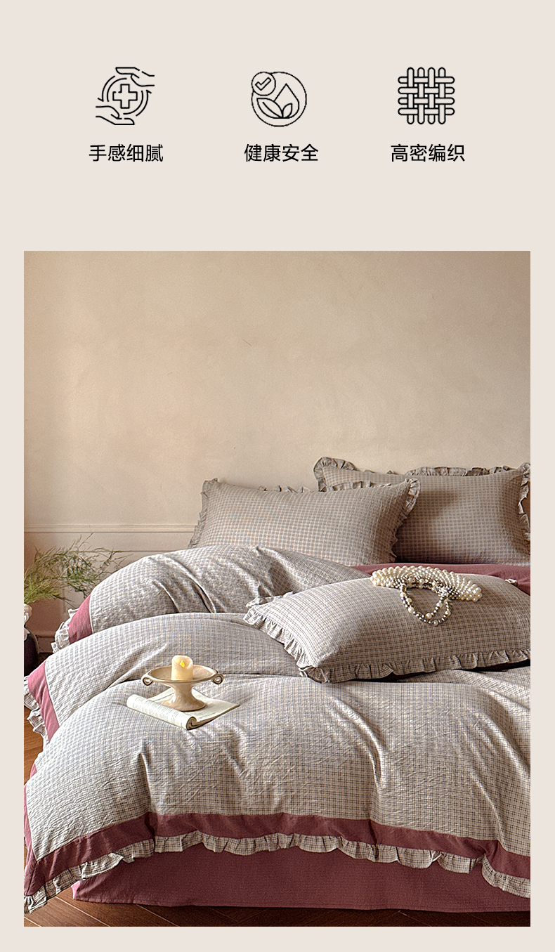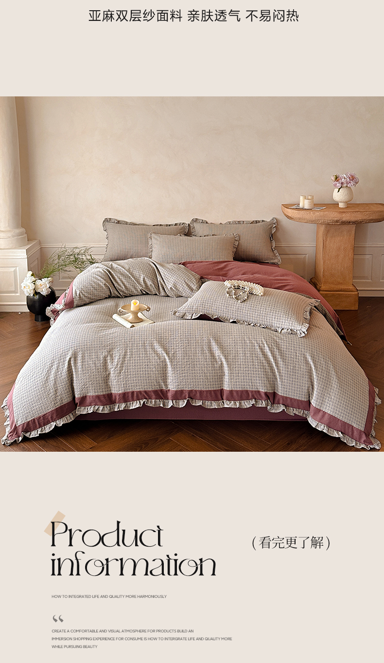 (总)遇见家居生活馆 2025新款亚麻双层纱印花四件套-往事