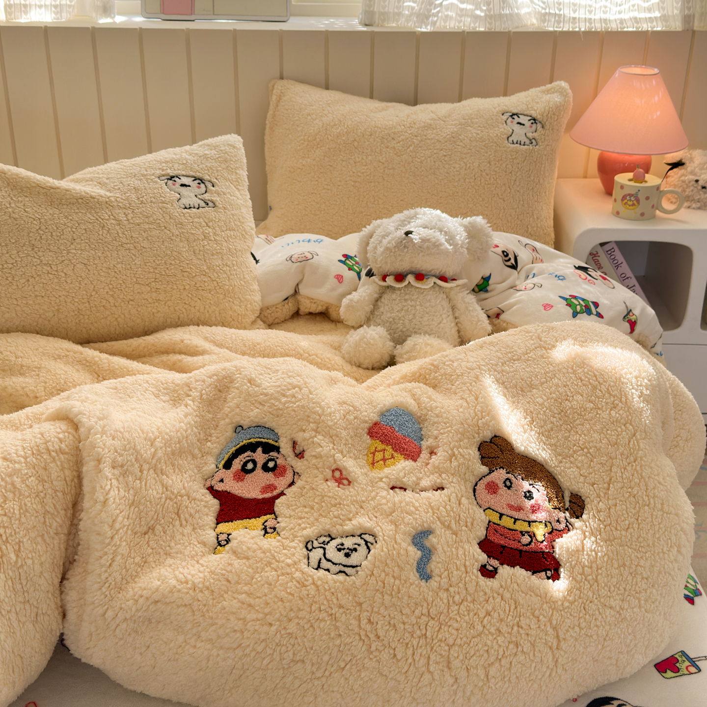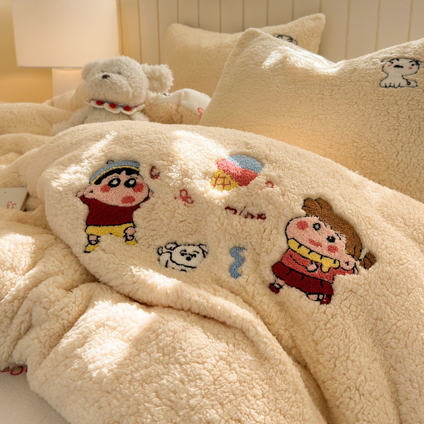 商品名称:一霖家纺 2025新款高克重羊羔毛毛巾绣四件套 新新与葵葵