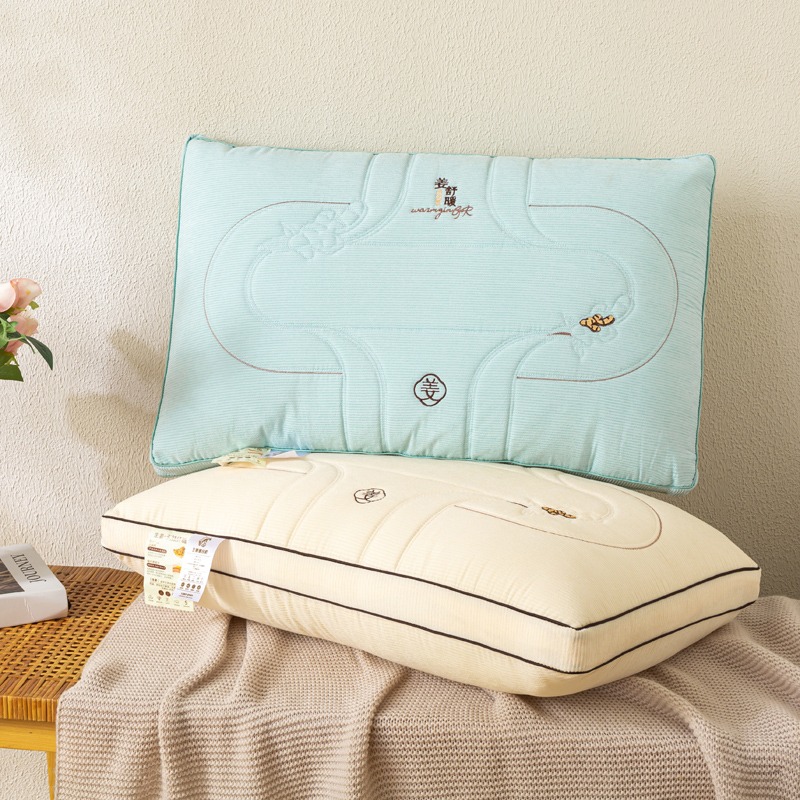 (总)佳尚枕芯 2025新款全棉纯棉保健护颈枕枕头枕芯,全棉保健护颈枕时尚金48x74cm/只,全棉保健护颈枕时尚蓝48x74cm/只