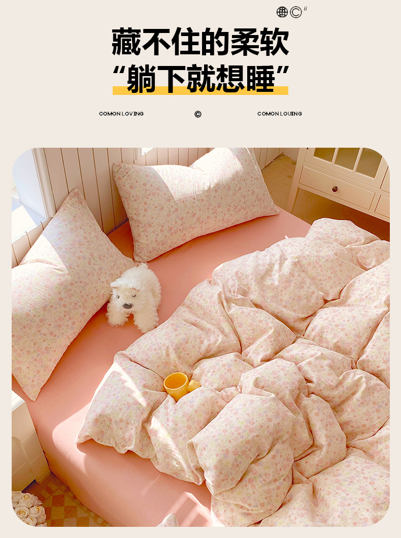 当前位置: 91家纺网 > 商品网购 > 床品套件 > 四件套 > 全棉普通四件套 > 春皖家纺 2026新款A类全棉有氧双层纱印花四件套单品系列-四件套 旧梦朝花