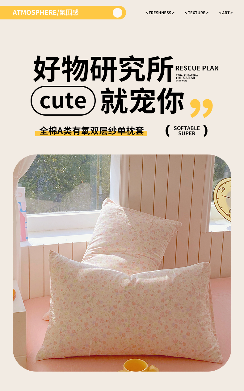 (总)春皖家纺 2026新款A类全棉有氧双层纱印花四件套单品系列-单枕套,桂语兰庭,暮春,雾染玫瑰,晴丝一缕,青茵,旧梦朝花,花织,花町,雾色里德,雾棕