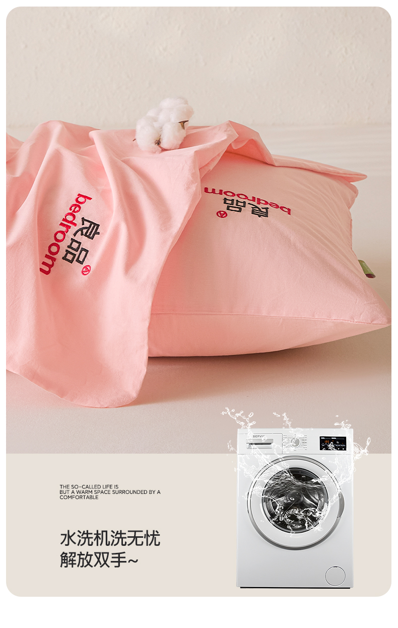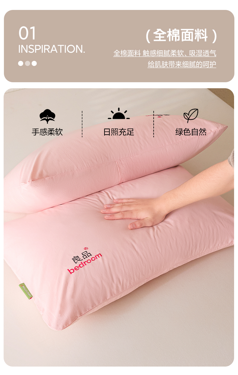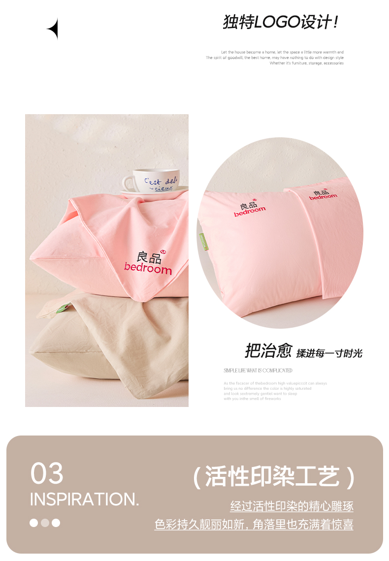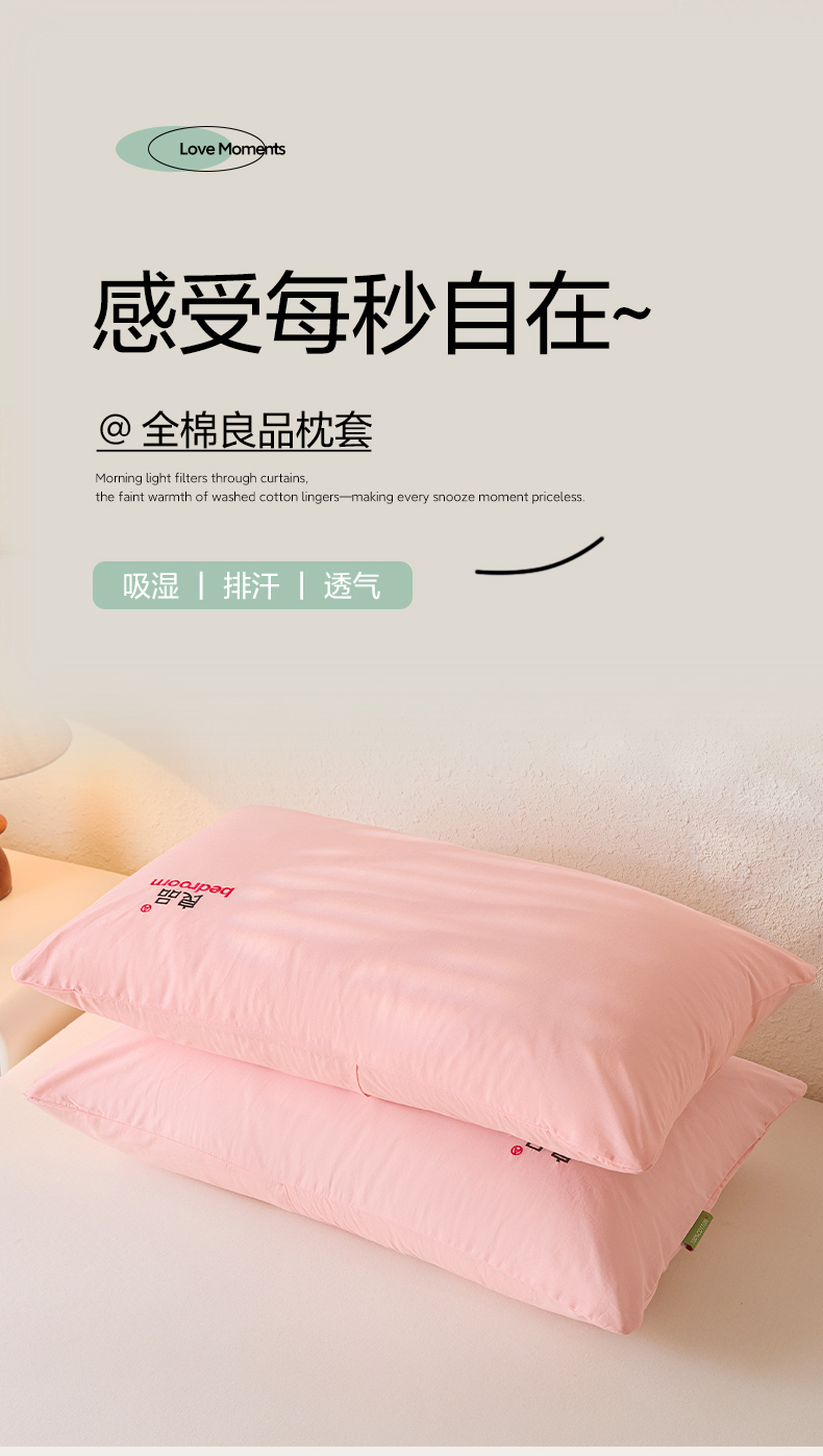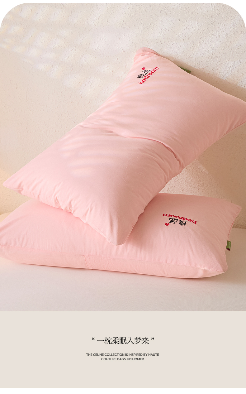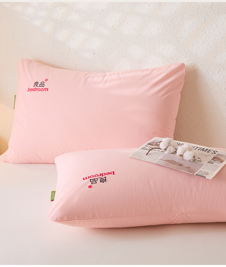 商品名称:芬晴家纺 2026新款条纹纯色良品刺绣枕套 纯色-嫩粉
