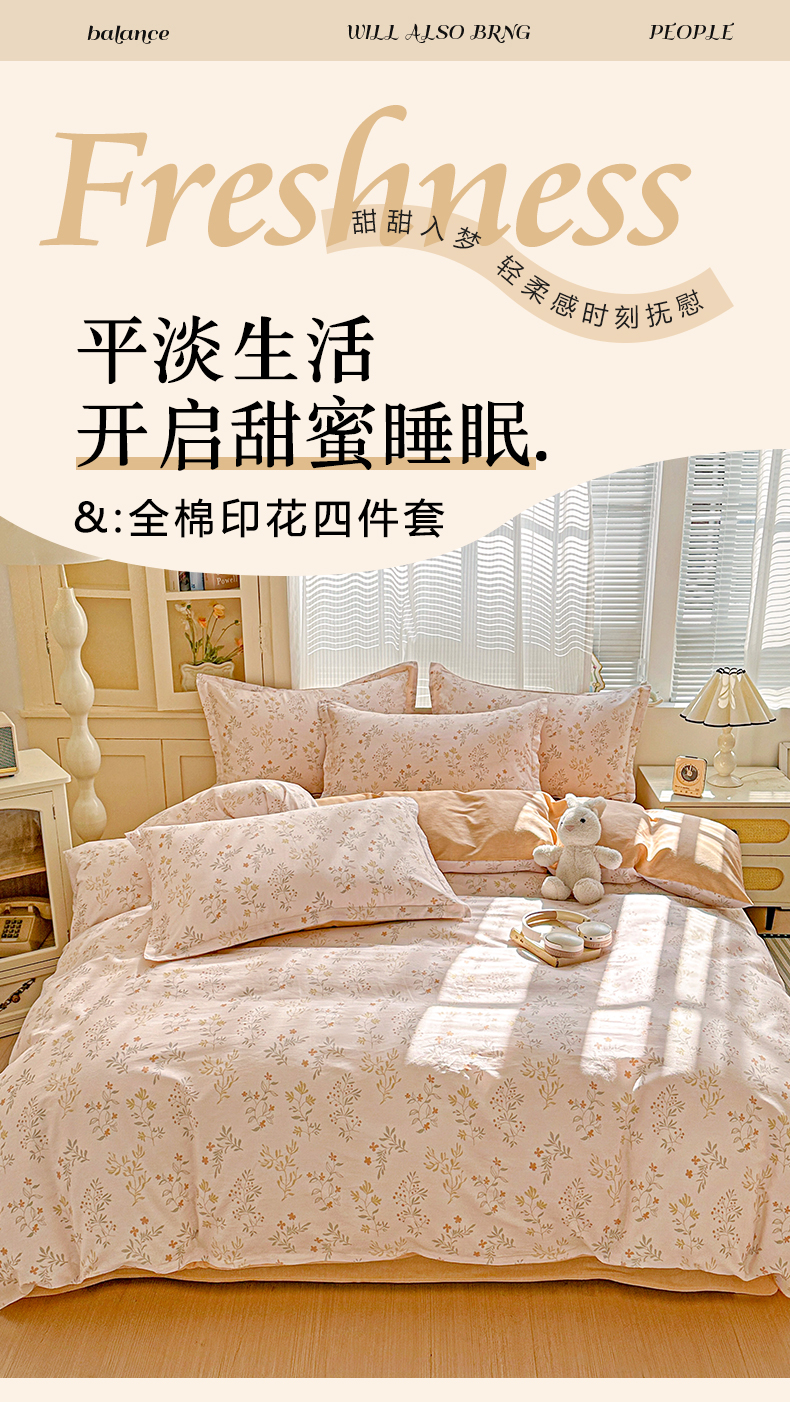 当前位置: 91家纺网 > 商品网购 > 床品套件 > 四件套 > 全棉普通四件套 > 春雨家居 2026新款全棉纯棉花ins减龄可爱小清新四件套 醉梦惜花