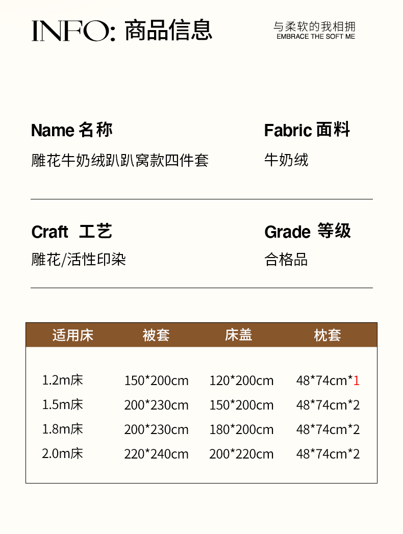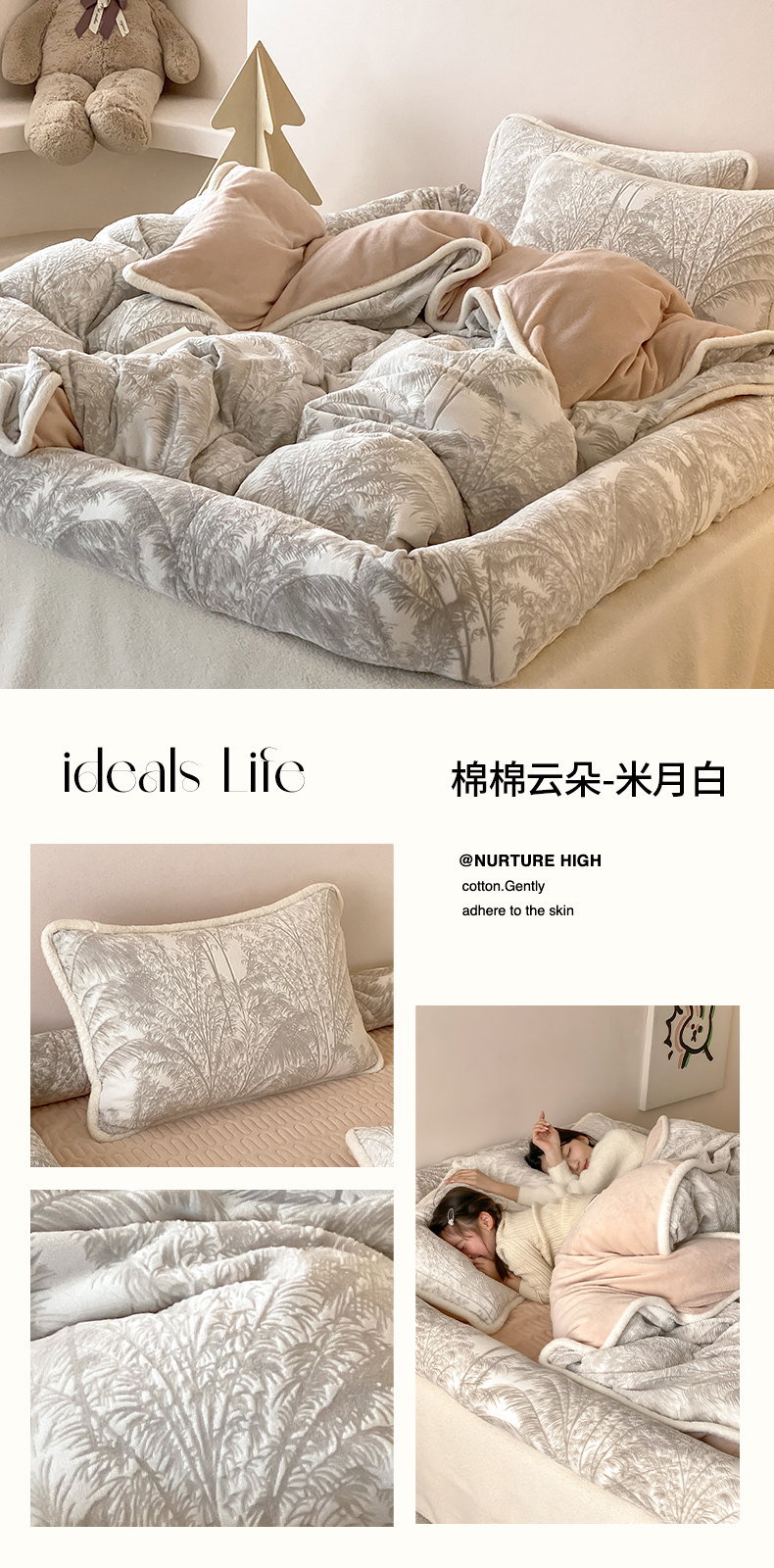 商品名称:极简 2026新款人类趴趴窝牛奶绒可拆卸四件套-棉棉云朵 棉棉云朵-米月白