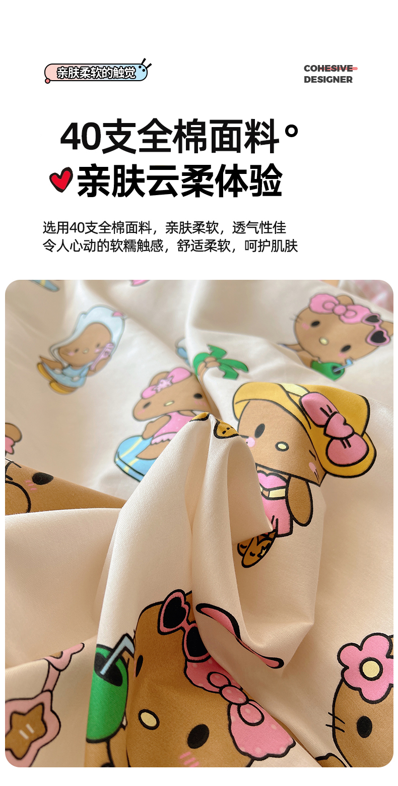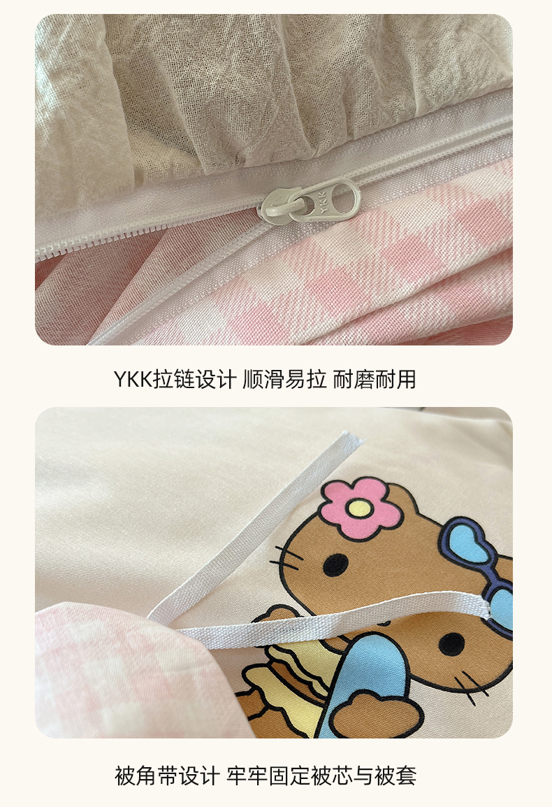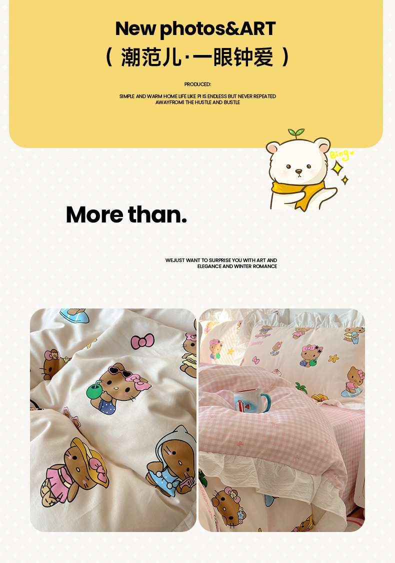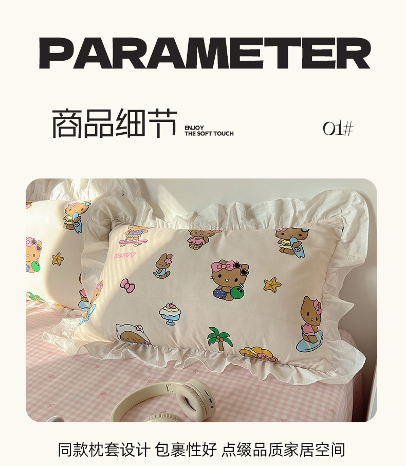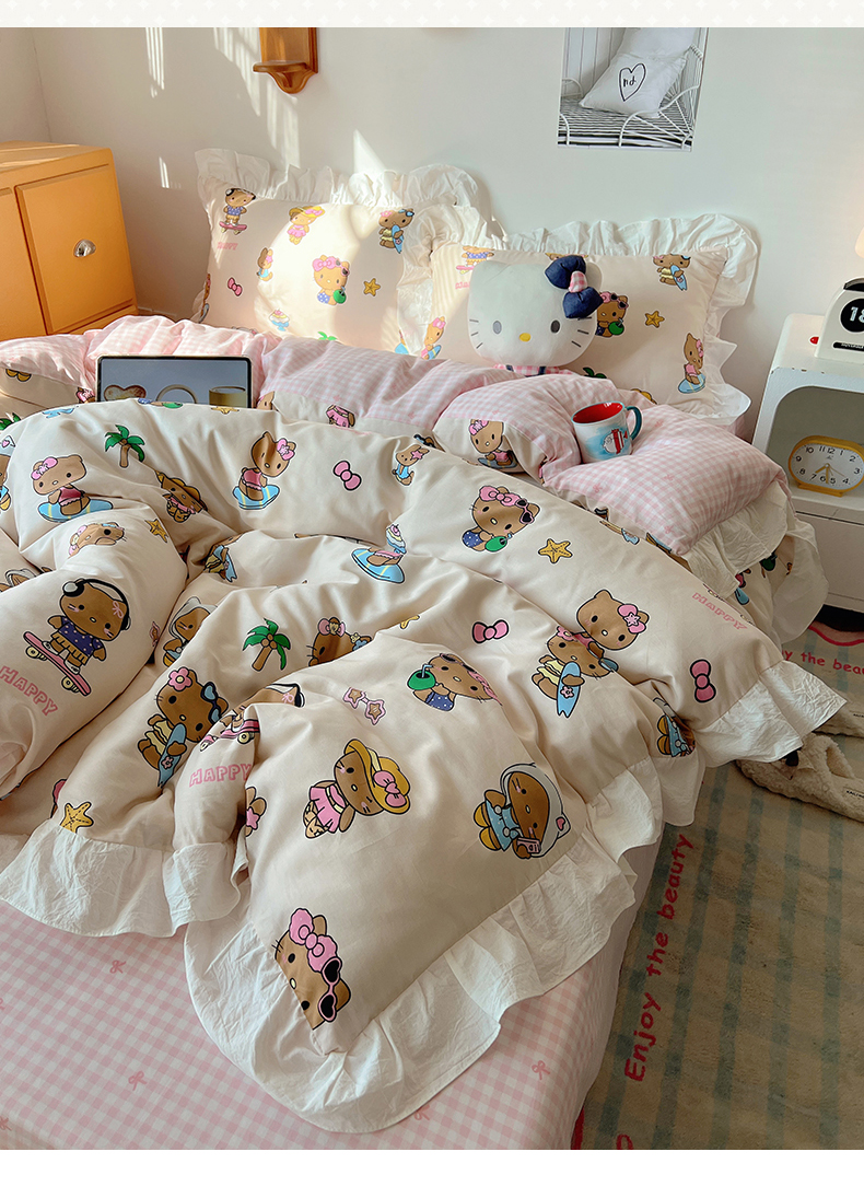 商品名称:六巷胡同 2026春夏新款韩系可爱风花边款卡通全棉四件套(第一系列) 花边度假冲浪猫