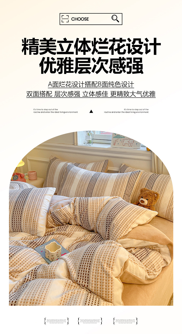 商品名称:良品汇馆 2026【特价牛奶绒四件套】牛奶绒四件套秋冬保暖绒布床品件套冬天加厚 暖格-粉