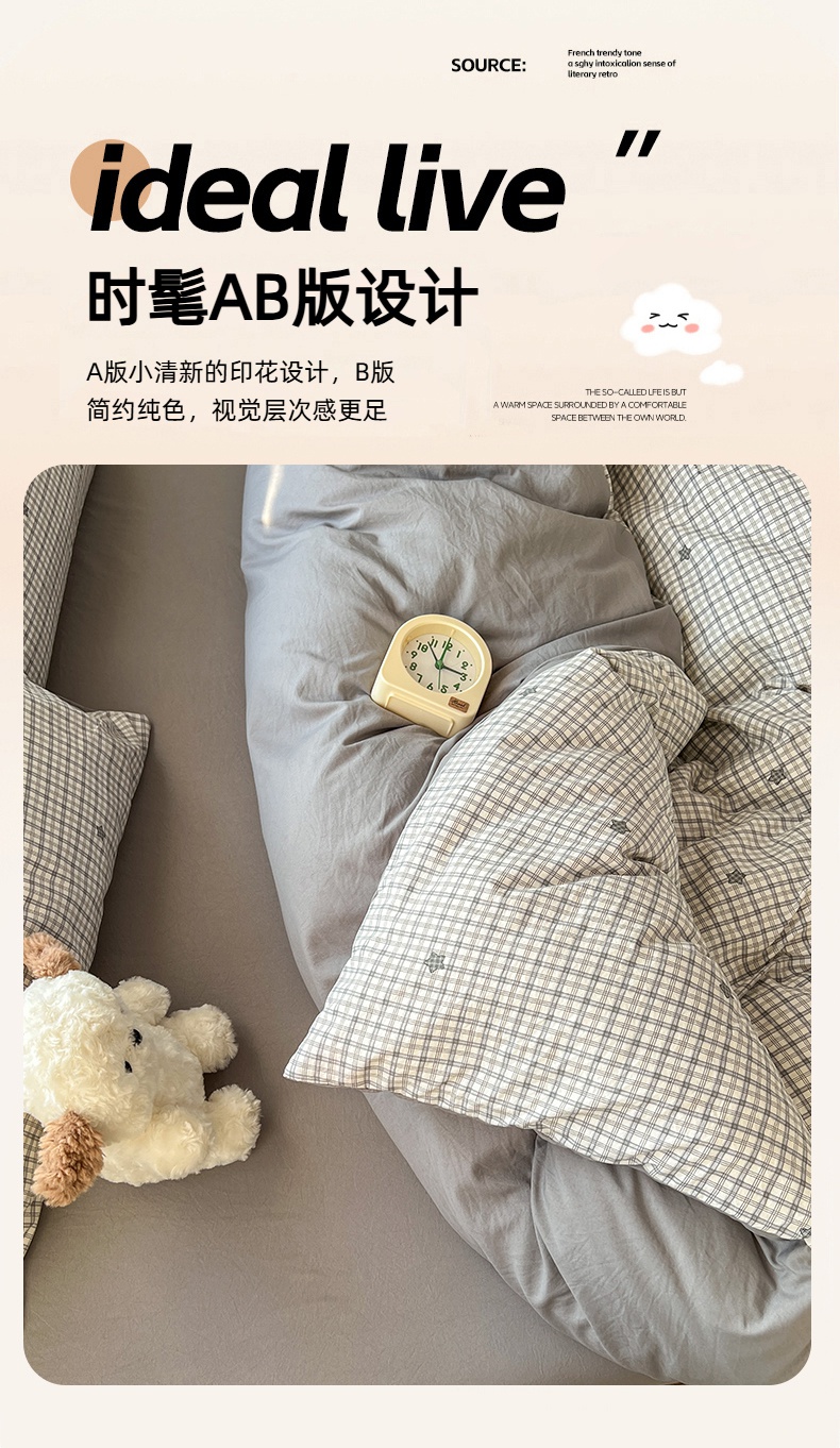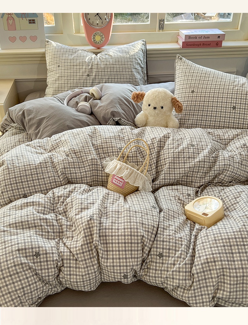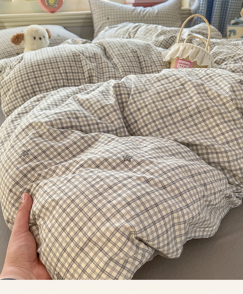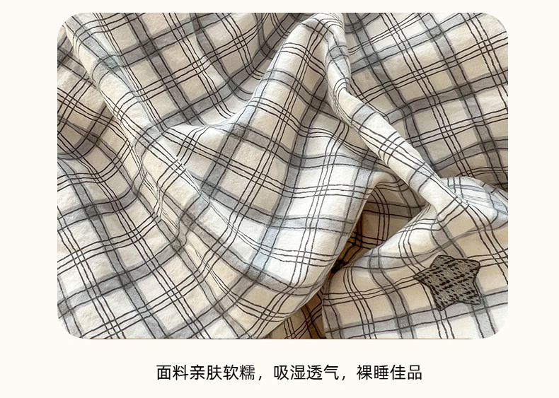 当前位置: 91家纺网 > 商品网购 > 床品套件 > 四件套 > 水洗棉四件套 > 思诺羽床笠 2026新款古法水洗仿棉云感棉三件套四件套 星星格纹