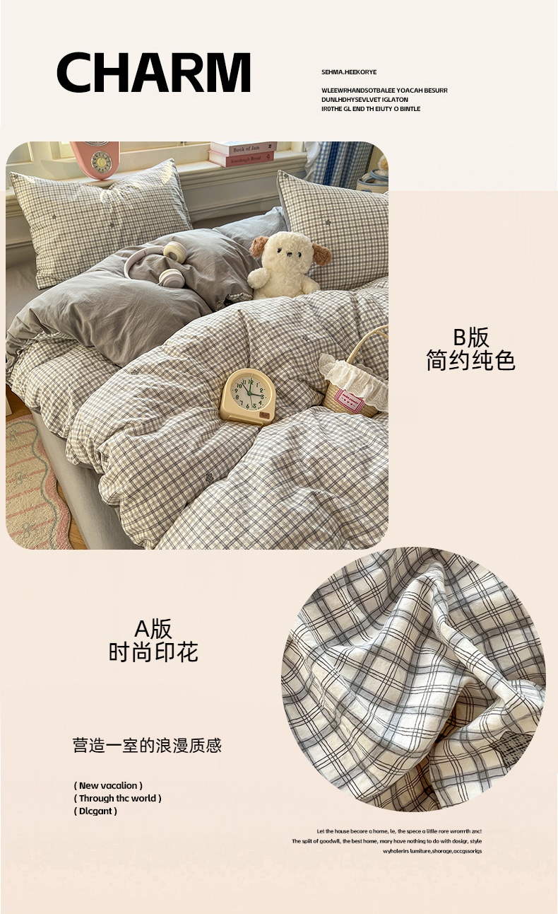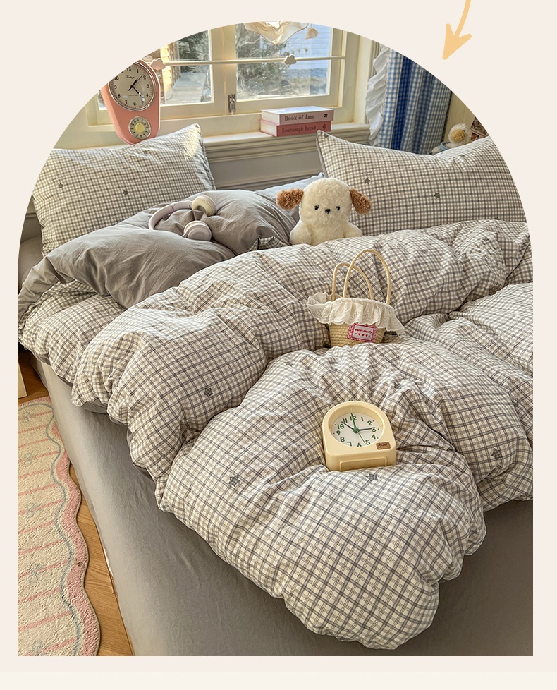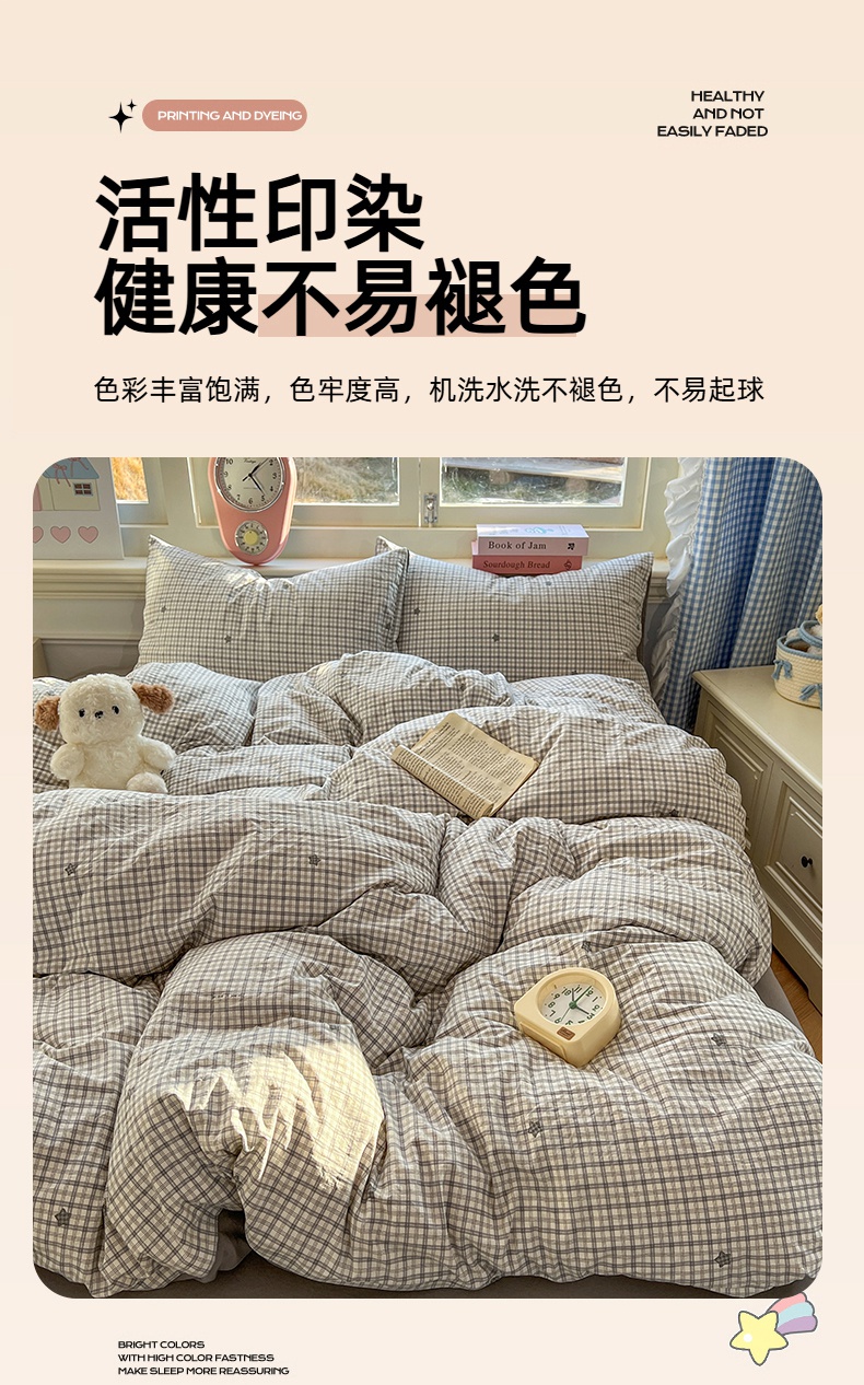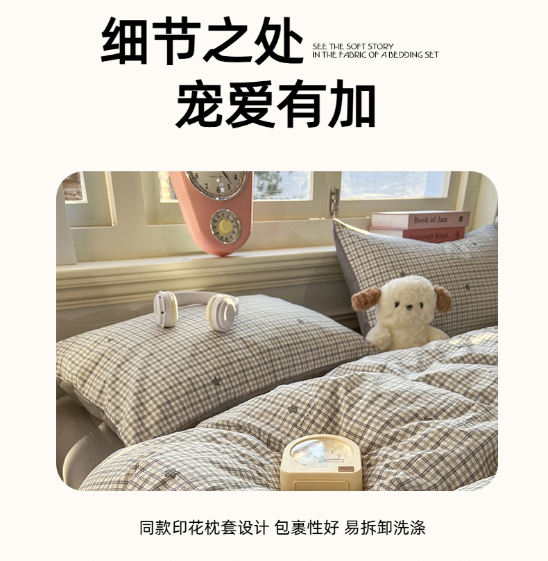 当前位置: 91家纺网 > 商品网购 > 床品套件 > 四件套 > 水洗棉四件套 > 思诺羽床笠 2026新款古法水洗仿棉云感棉三件套四件套 星星格纹