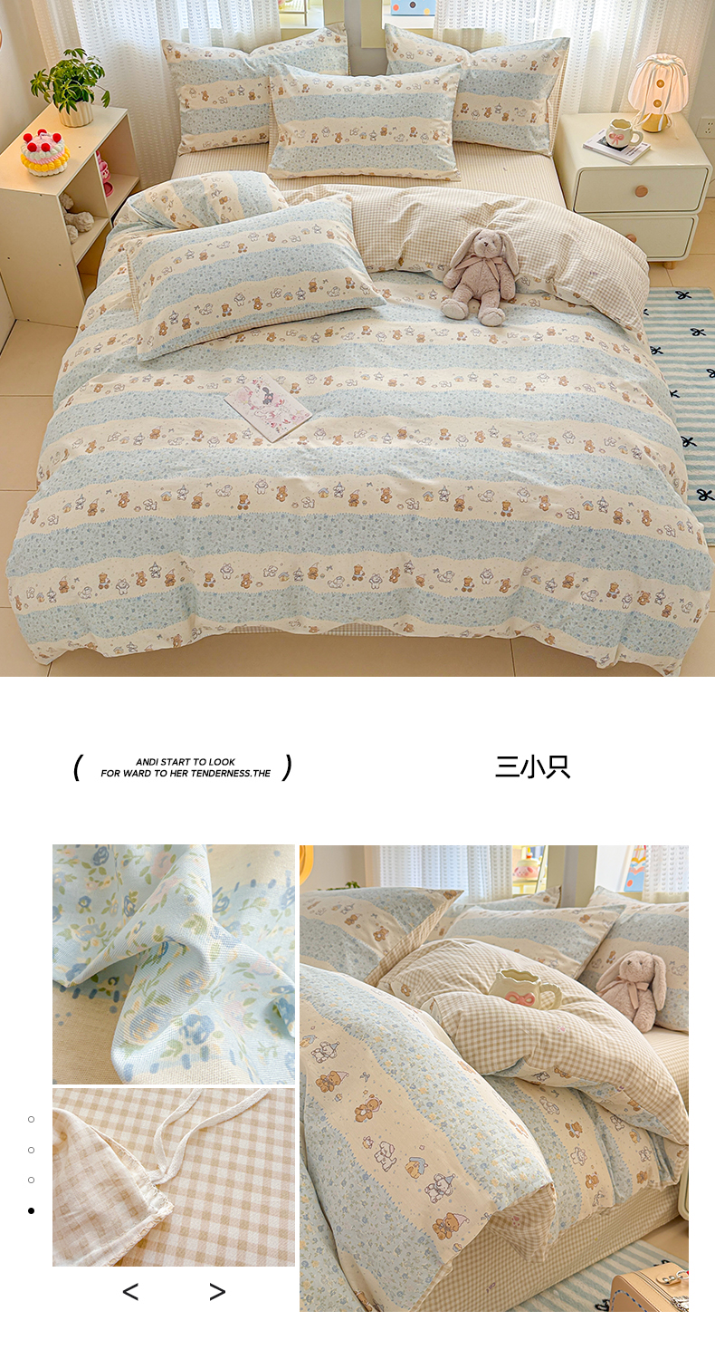 (总)呗旺鹿 2026新款全棉40支12868田园卡通小清新系列四件套,雅柔,蓝叶兔,软糖萌宠,三小只,童话乐园,小熊艺语,樱桃小象,H萝卜兔,L红茶兔兔,L欧包小奶兔,L浅糖兔叽