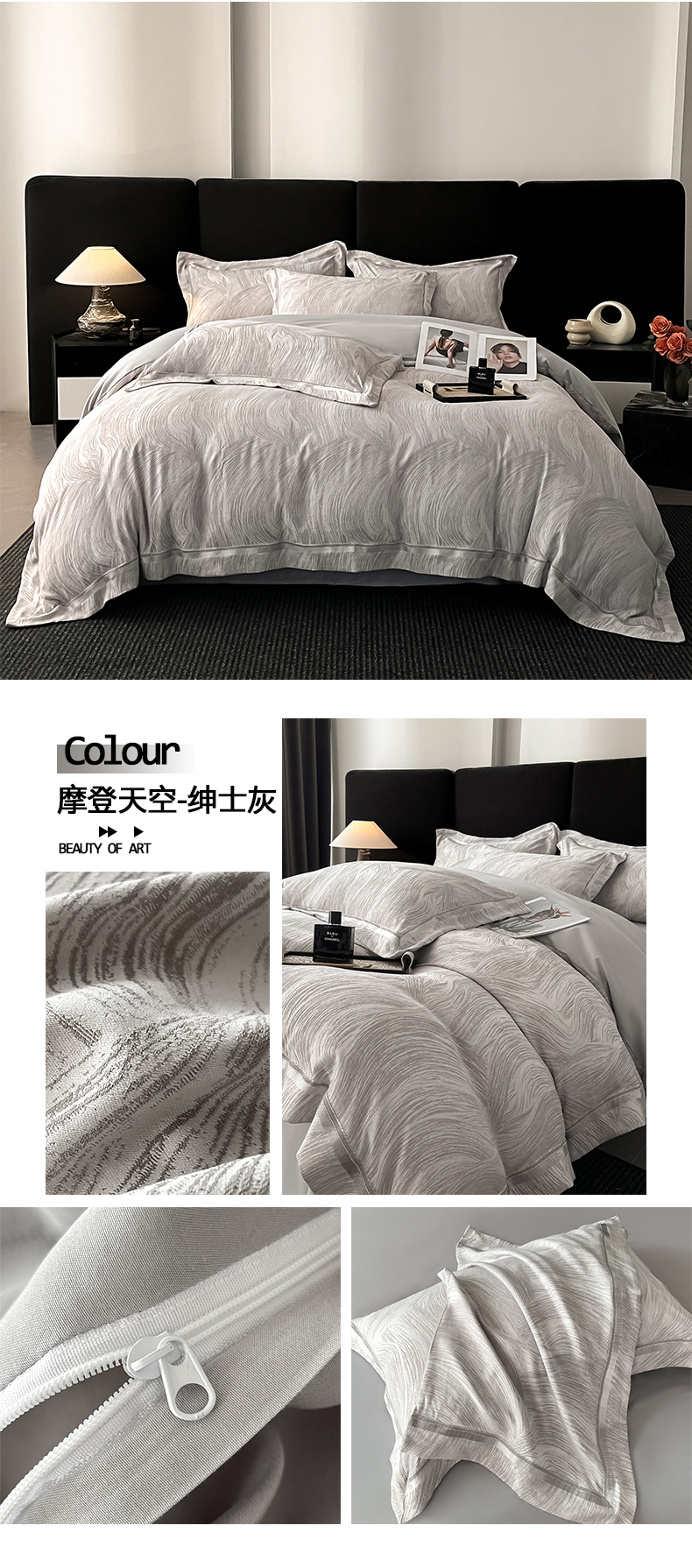 当前位置: 91家纺网 > 商品网购 > 床品套件 > 四件套 > 其它四件套 > 置顶家纺 2026新款摩登天空亲肤磨毛提花系列四件套 摩登天空-绅士灰