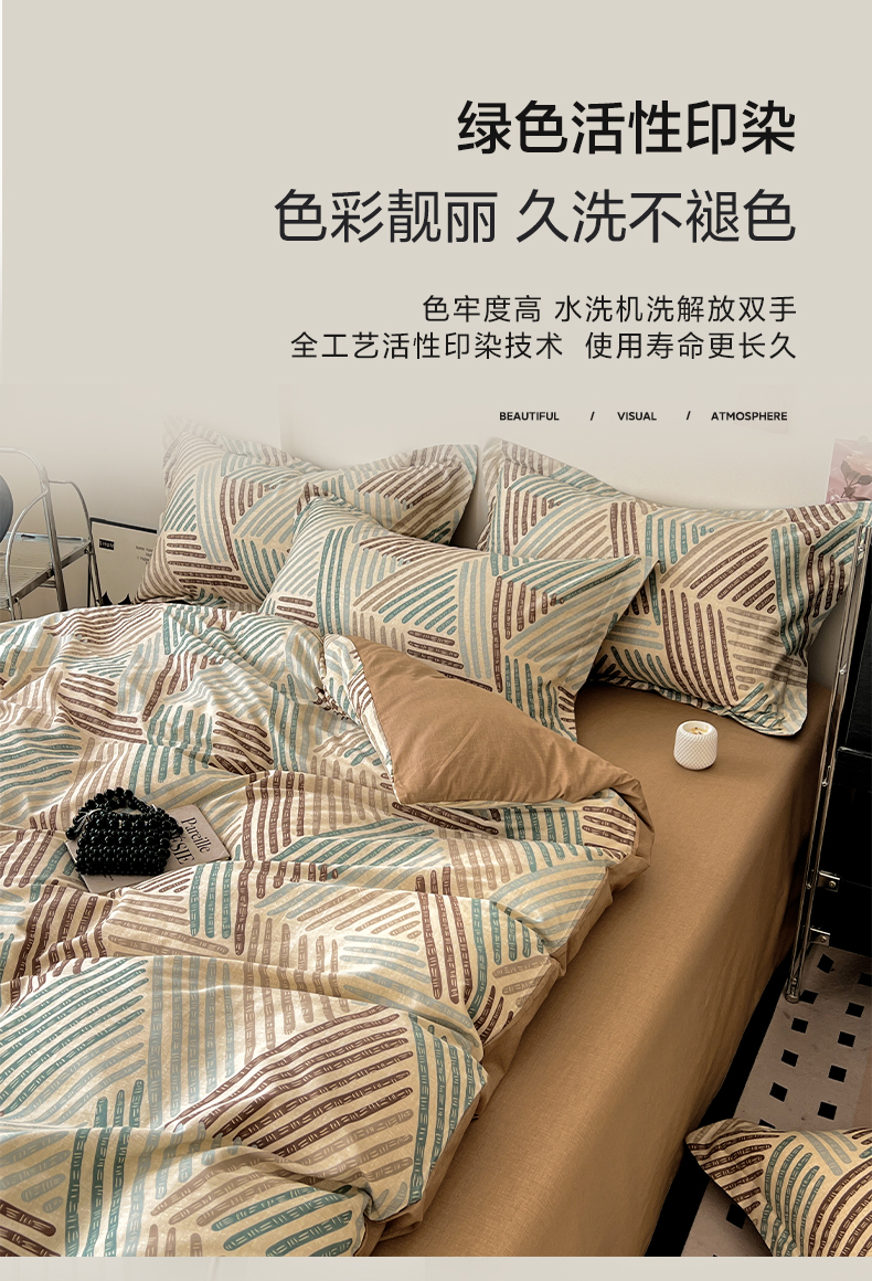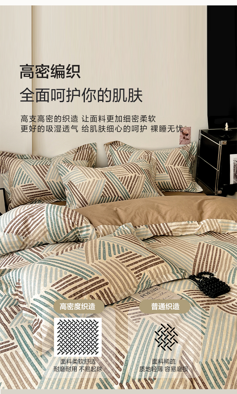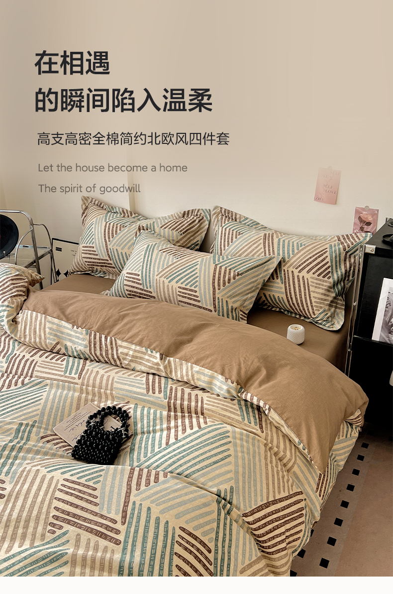盛馨家纺 2026新款全棉高支高密精梳棉北欧绅士风四件套纯棉床笠学生三件套 艾米