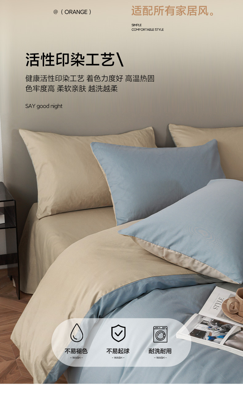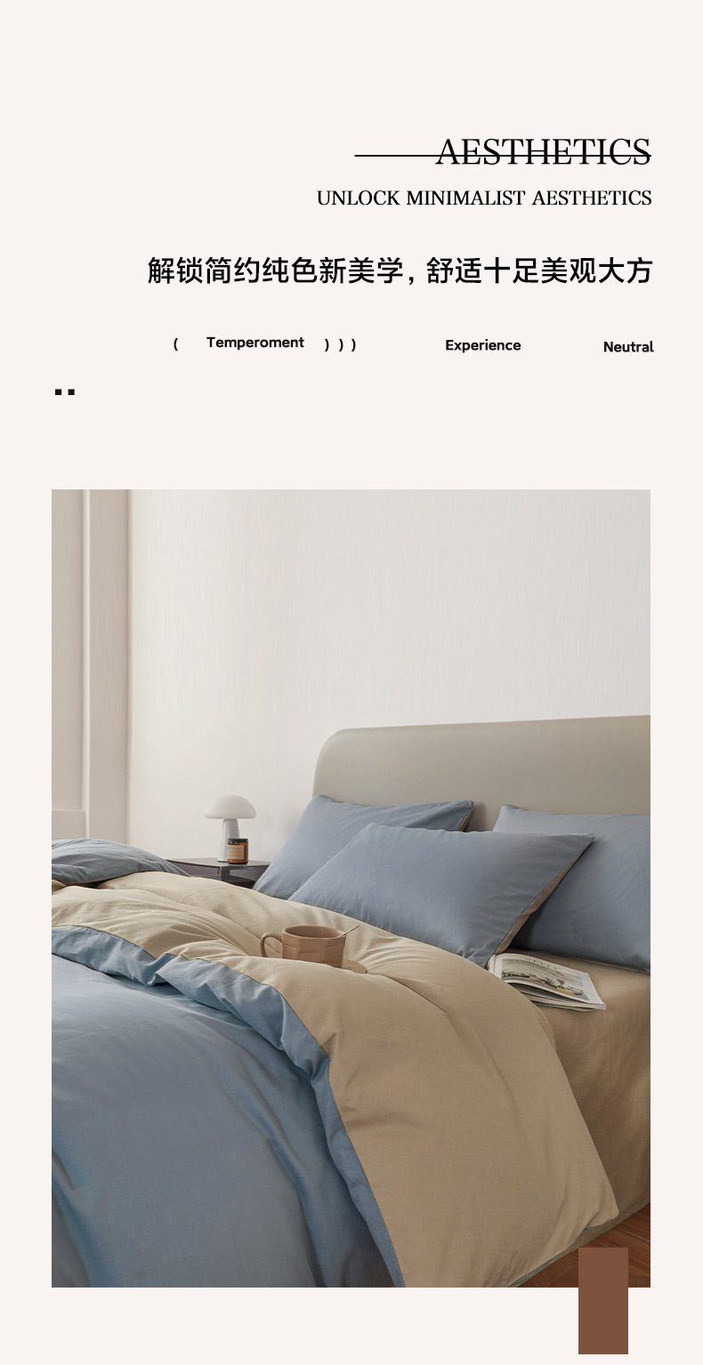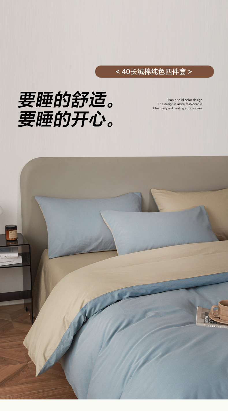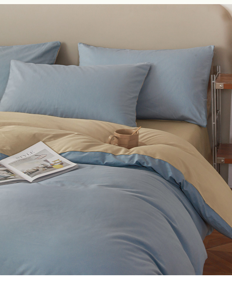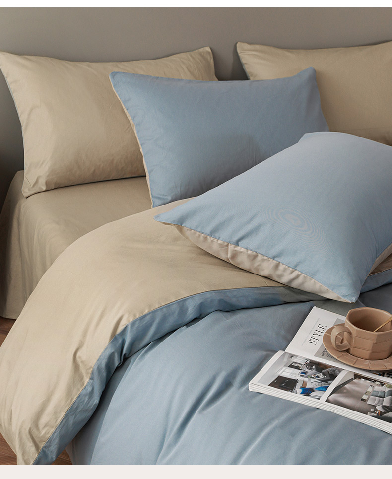 当前位置: 91家纺网 > 商品网购 > 床品套件 > 四件套 > 全棉普通四件套 > 盛馨家纺 2026新款40长绒棉ins美拉德色系纯色双拼全棉单品四件套单人纯色三件套 晴蓝+奶茶