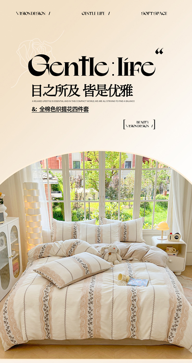 良品汇馆 2026【全棉色织提花四件套】全棉色织提花四件套良品A类双拼提花床品 桔梗-浅紫