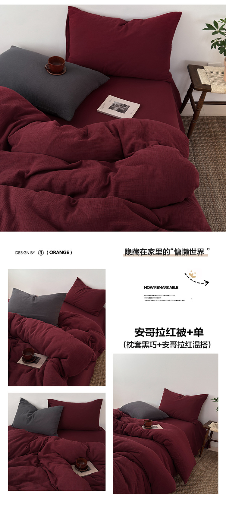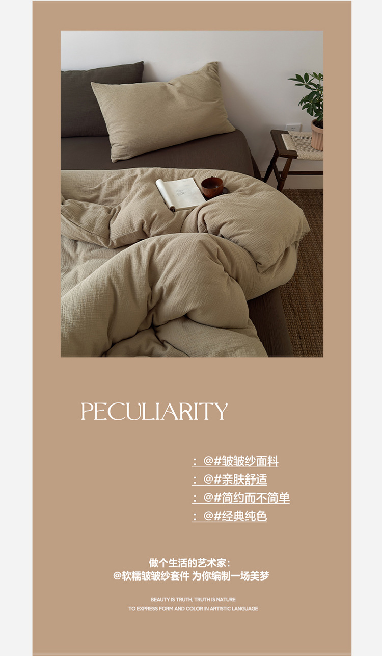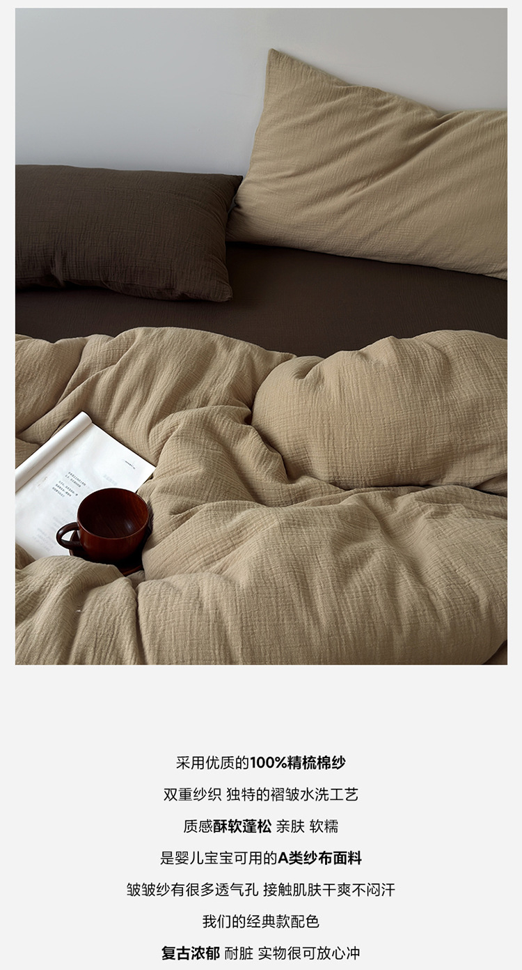 当前位置: 91家纺网 > 商品网购 > 床品套件 > 四件套 > 双层纱四件套 > 良品汇馆 2026【纯色皱皱纱四件套】四件套良品全棉柔软床品套件双层水洗做皱件套 (安哥拉红被+单)枕套安哥拉红一对