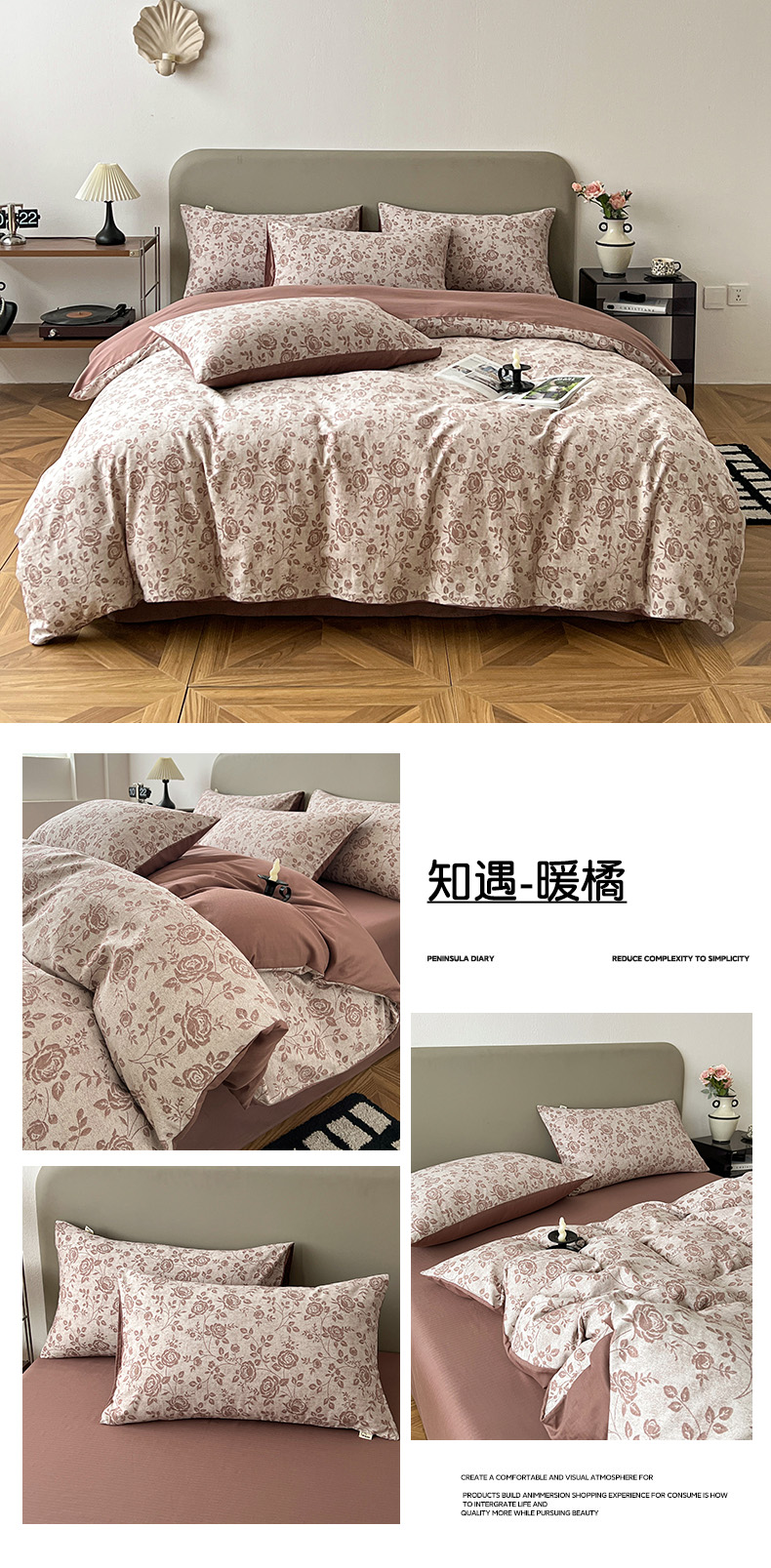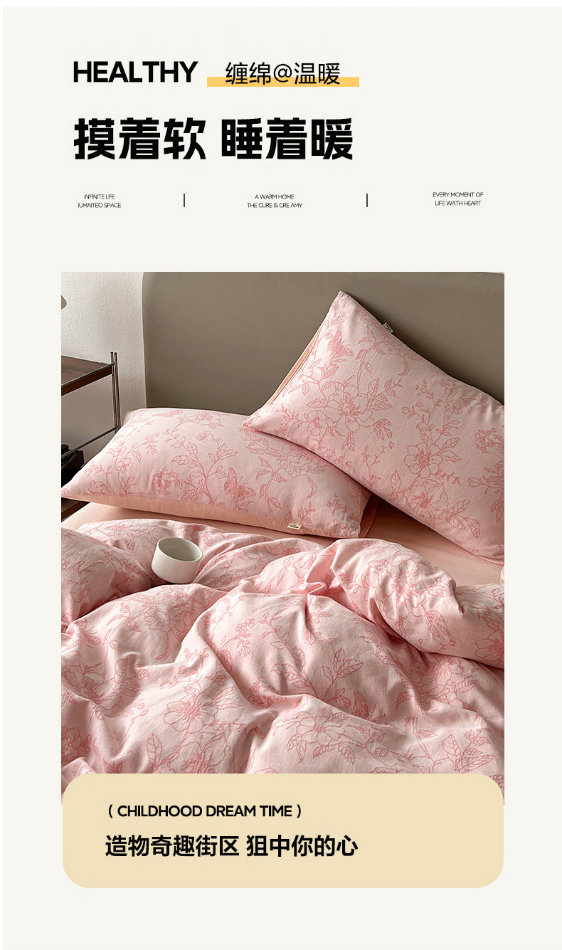 (总)女子家纺 2026新款全棉纯棉绗缝花边床盖四件套,暖菊花兔,牵藤兔,素条花-粉,素条花-蓝,兔与花笺,幸福小兔