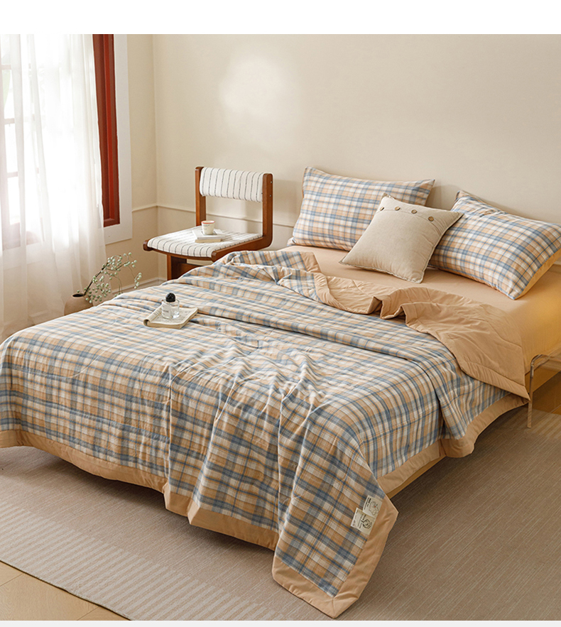 悦然毛巾被 2026新款全棉水洗棉夏被夏凉被空调被 暖格晚风咖
