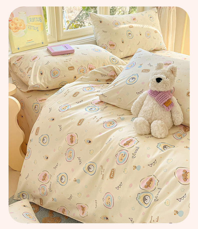 当前位置: 91家纺网 > 商品网购 > 床品套件 > 四件套 > 全棉普通四件套 > 寻米 2026春夏新款全棉13070印花四件套单品系列场景二-四件套 小熊软糖