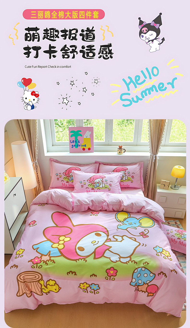 当前位置: 91家纺网 > 商品网购 > 床品套件 > 四件套 > 全棉普通四件套 > 浩诚 2026新款专版三丽鸥hellokitty库洛米正版授权大版全棉纯棉四件套 花园派对