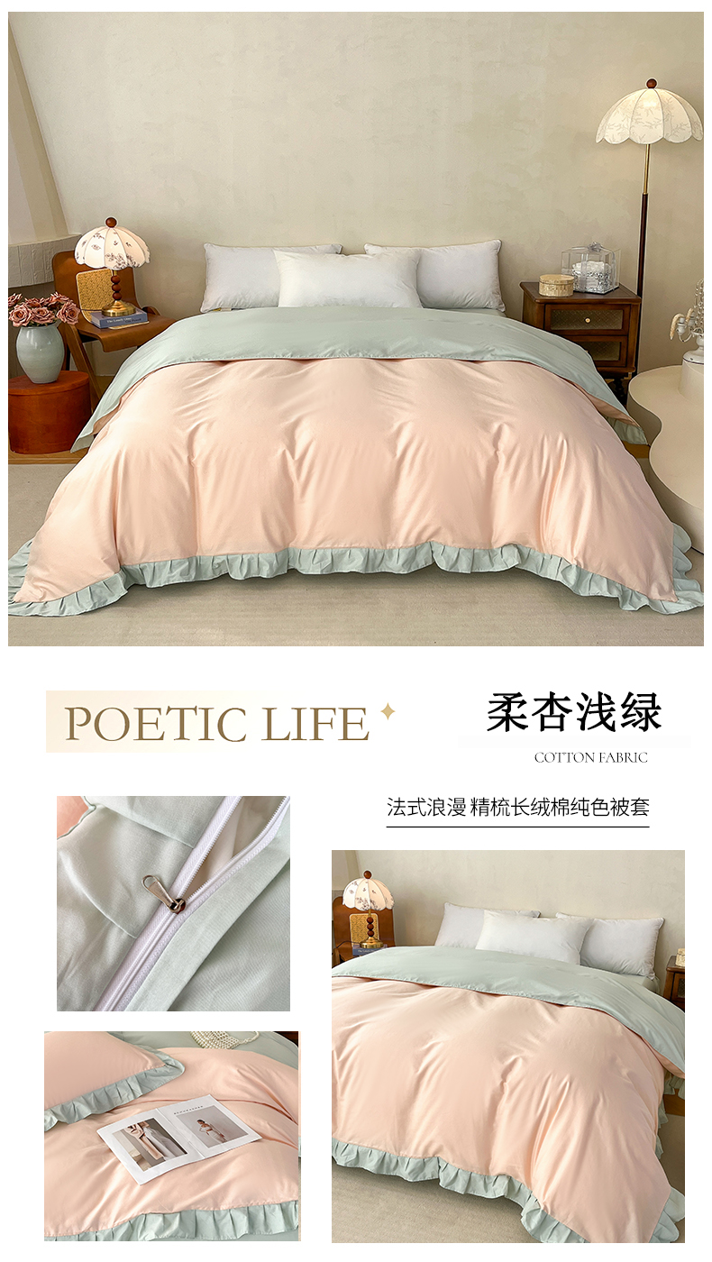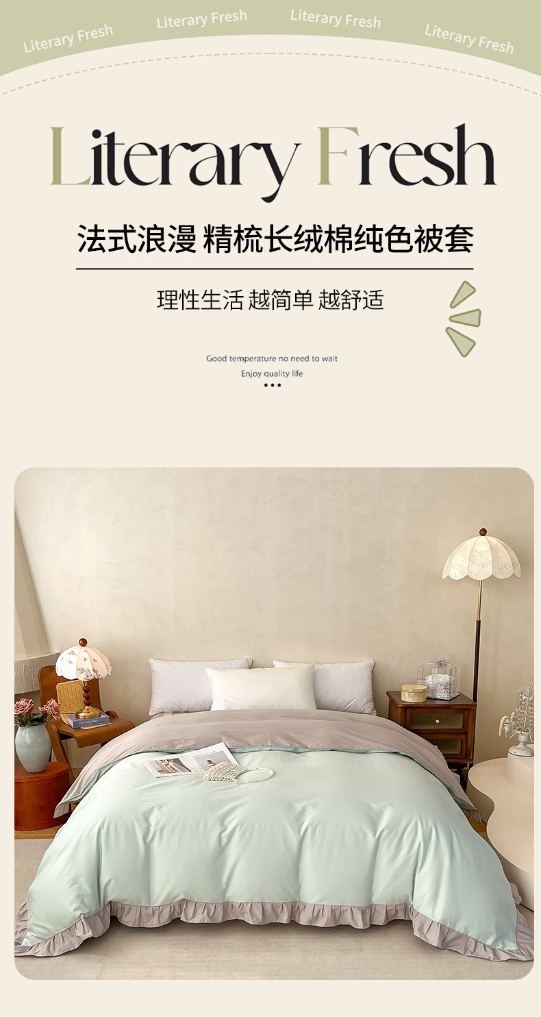 • 91家纺网 家纺一手货源 找家纺 艾迪尚家纺 2026法式韩版荷叶边纯色长绒棉纯棉单被套 青提絮语