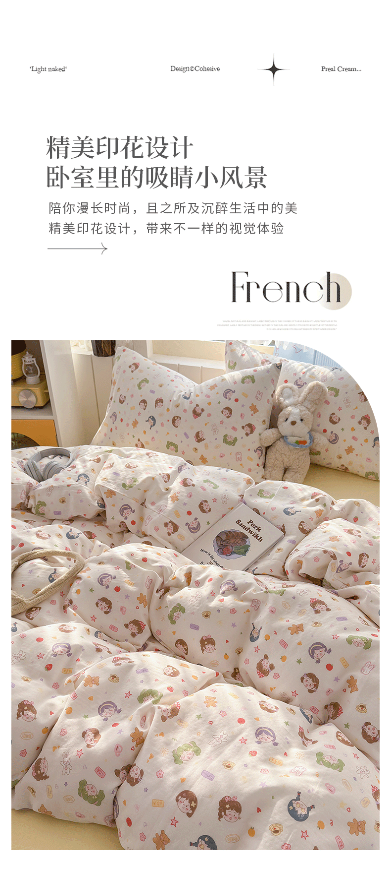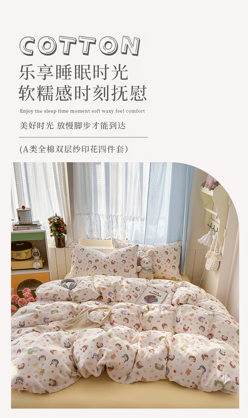 当前位置: 91家纺网 > 商品网购 > 床品套件 > 四件套 > 全棉普通四件套 > 爱思佳 2026新款全棉纯棉双层纱基款系列四件套 女孩乐园