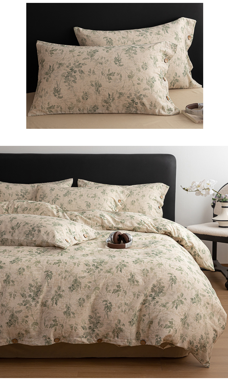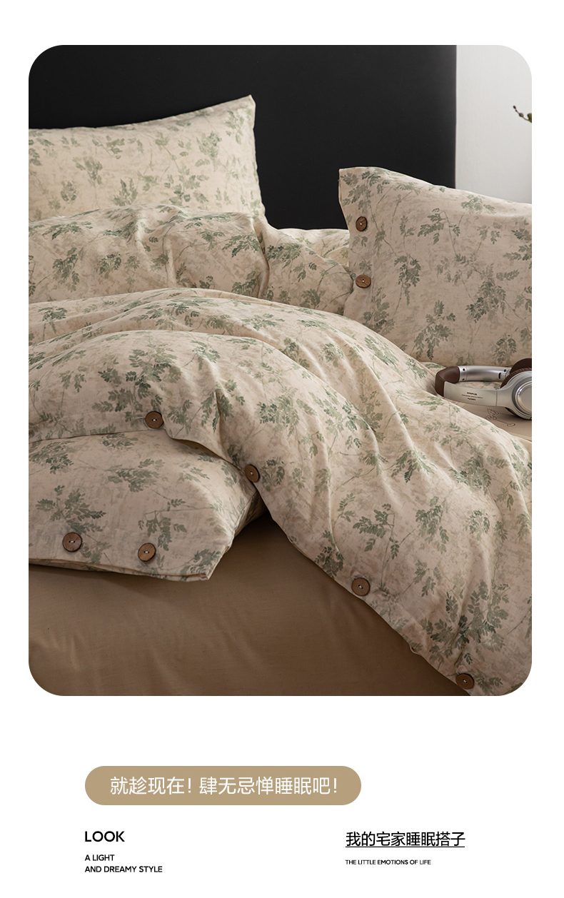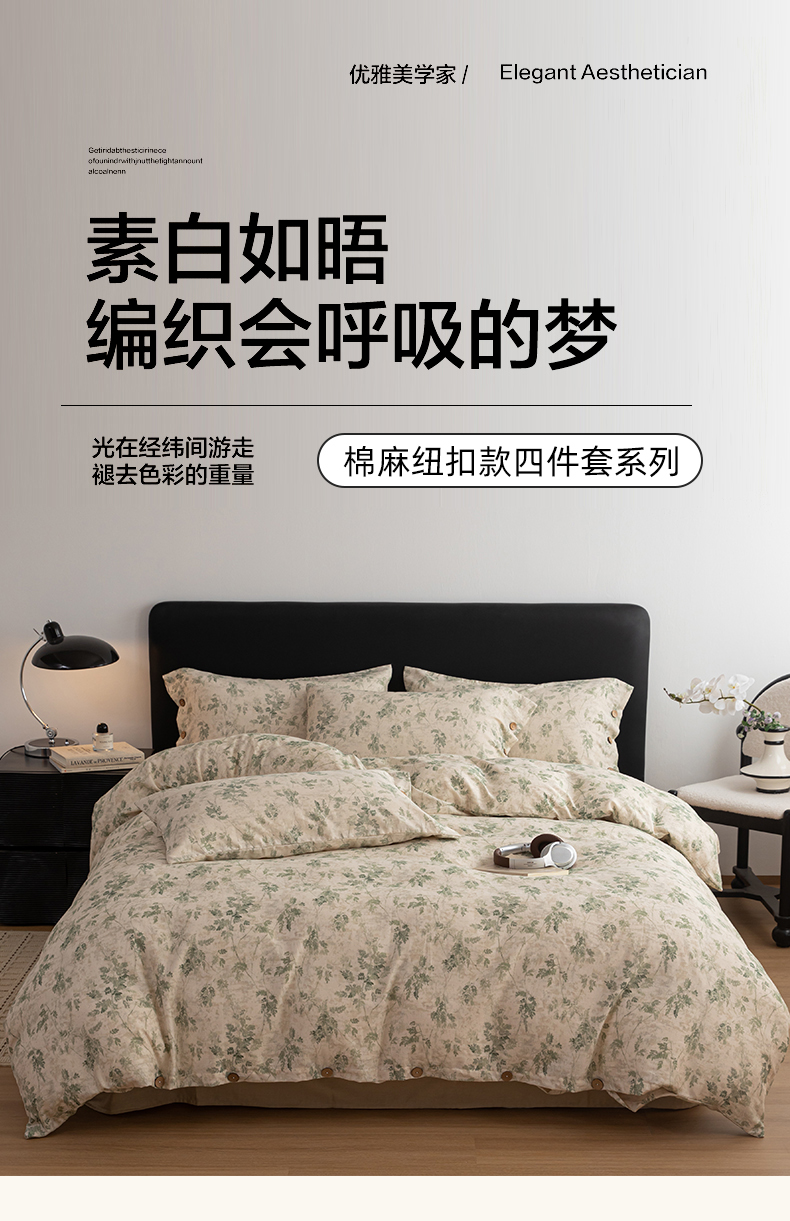 当前位置: 91家纺网 > 商品网购 > 床品套件 > 四件套 > 其它四件套 > 女子家纺 2026新款棉麻纽扣款四件套 青藤蔓叶