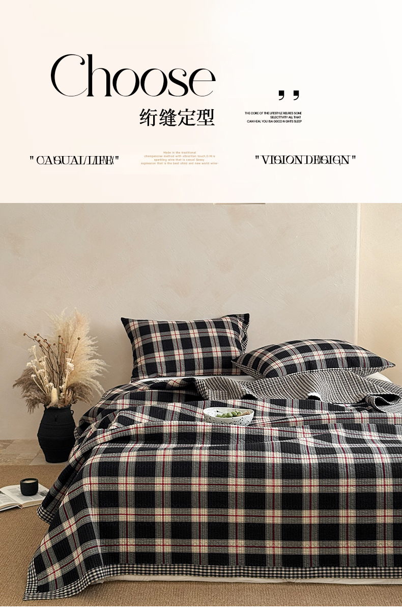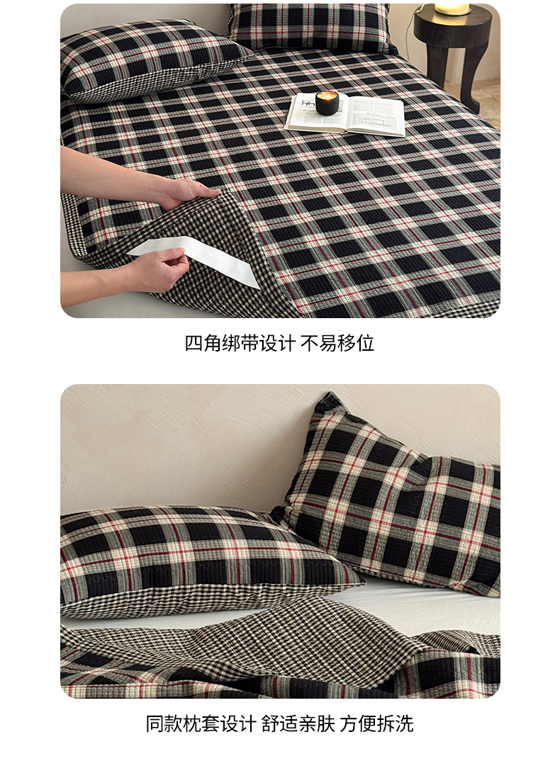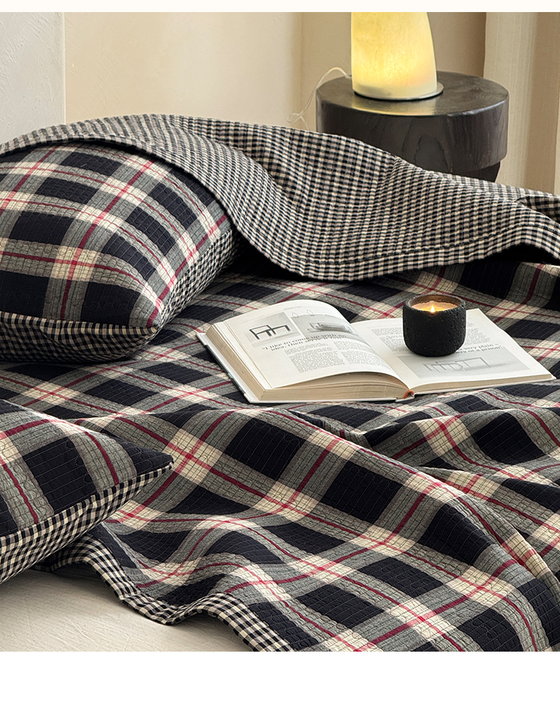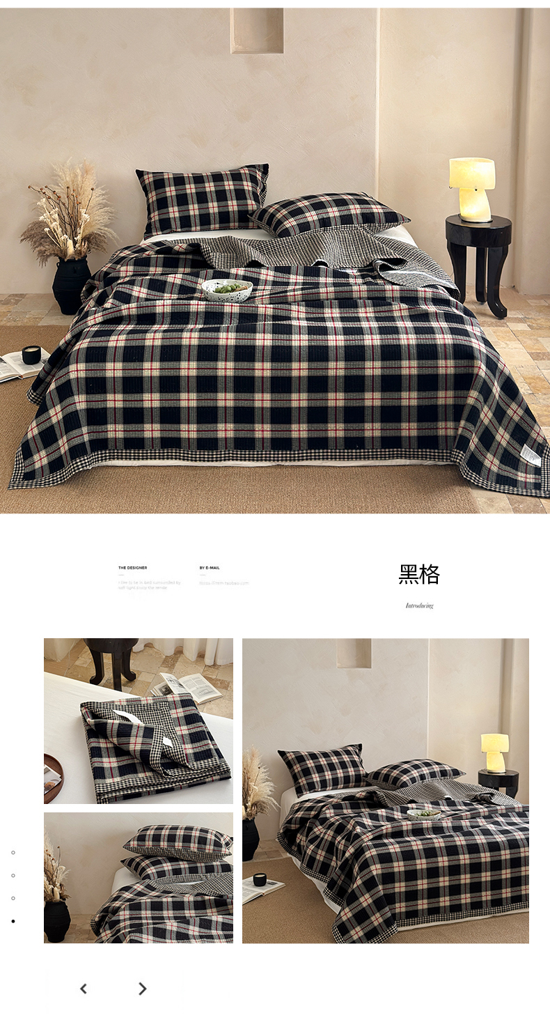 (总)法芙娜家纺 2026新款双面全棉色织水洗棉床盖,黑格,咖格,灰格,米格,粉格,花格