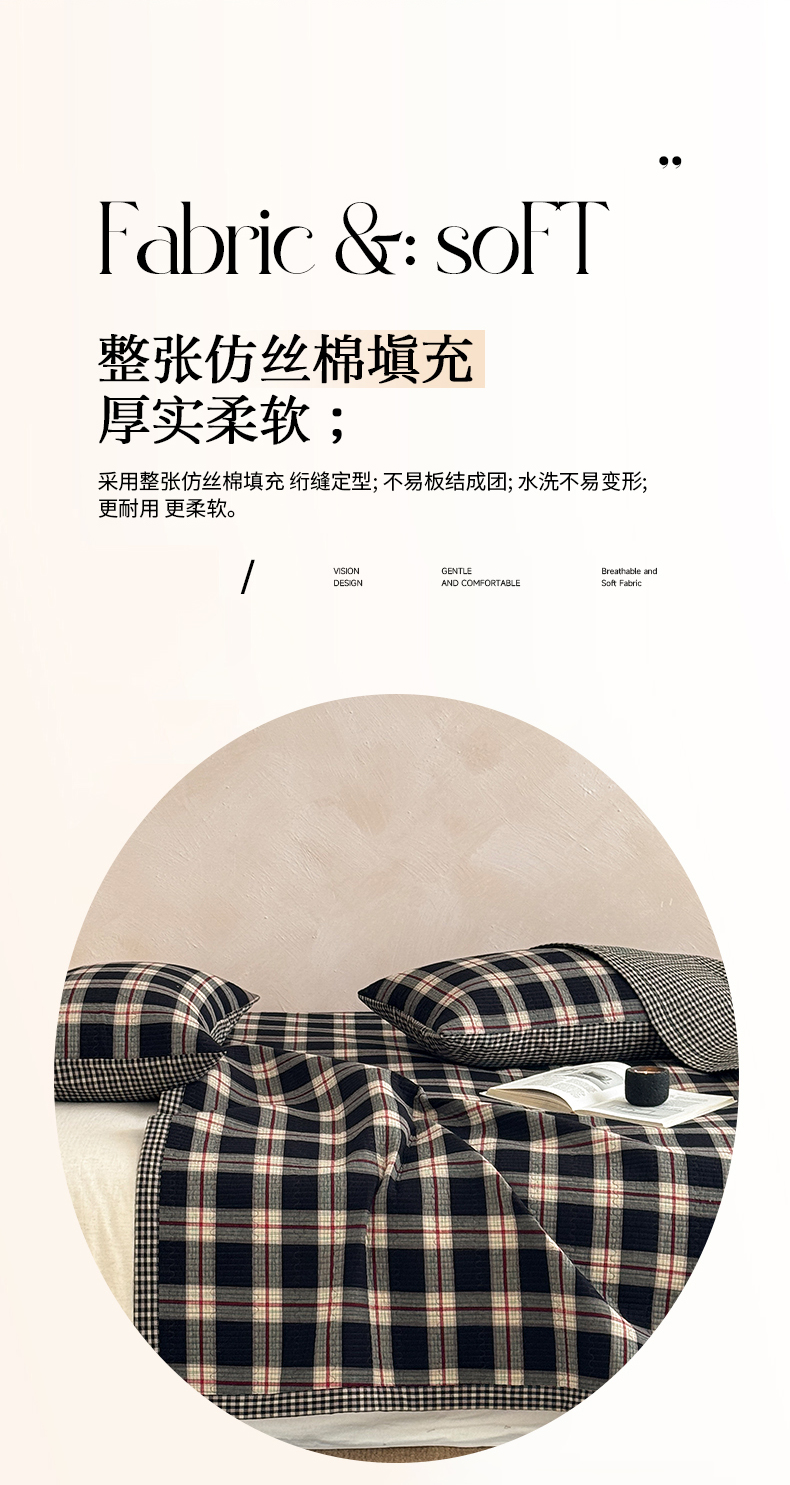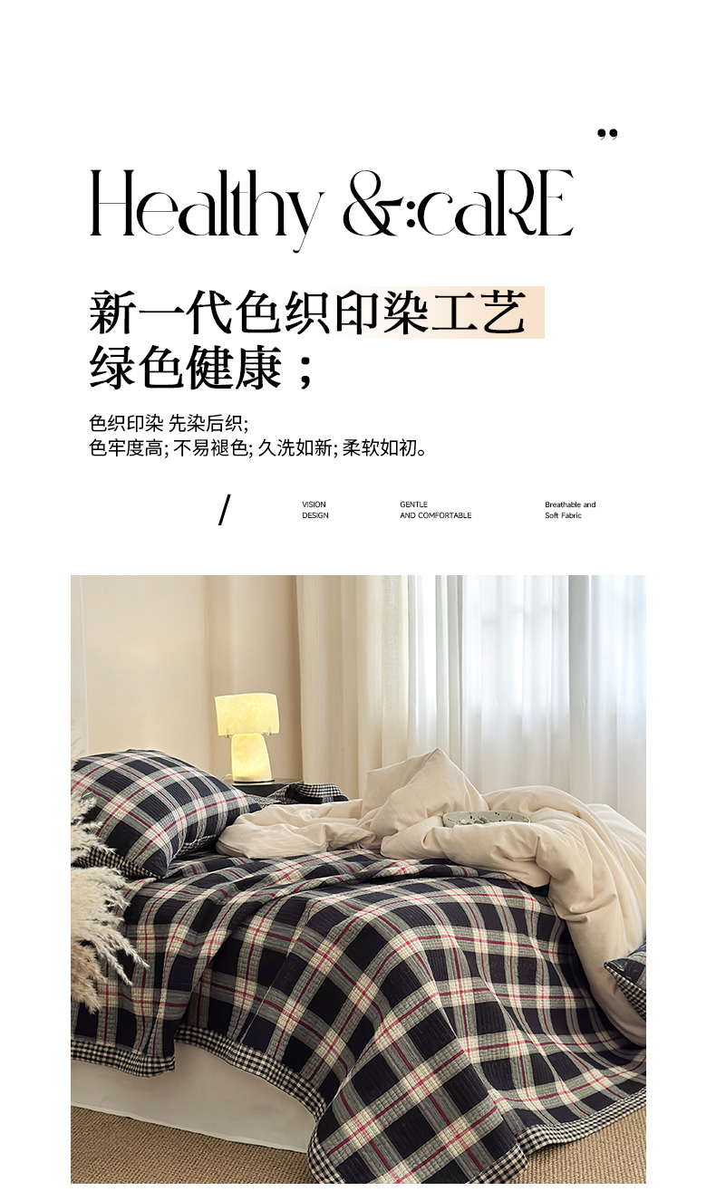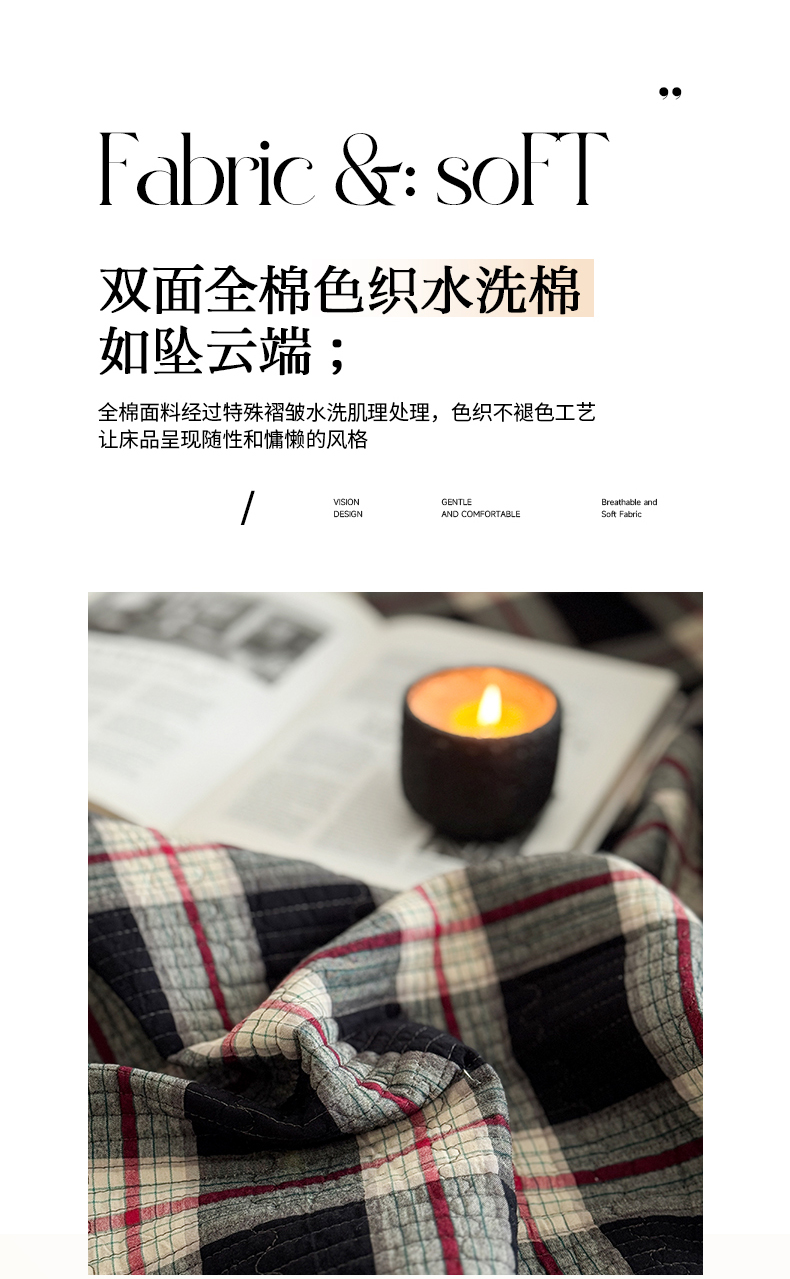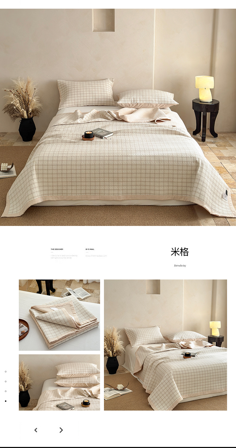 (总)法芙娜家纺 2026新款双面全棉色织水洗棉床盖,黑格,咖格,灰格,米格,粉格,花格