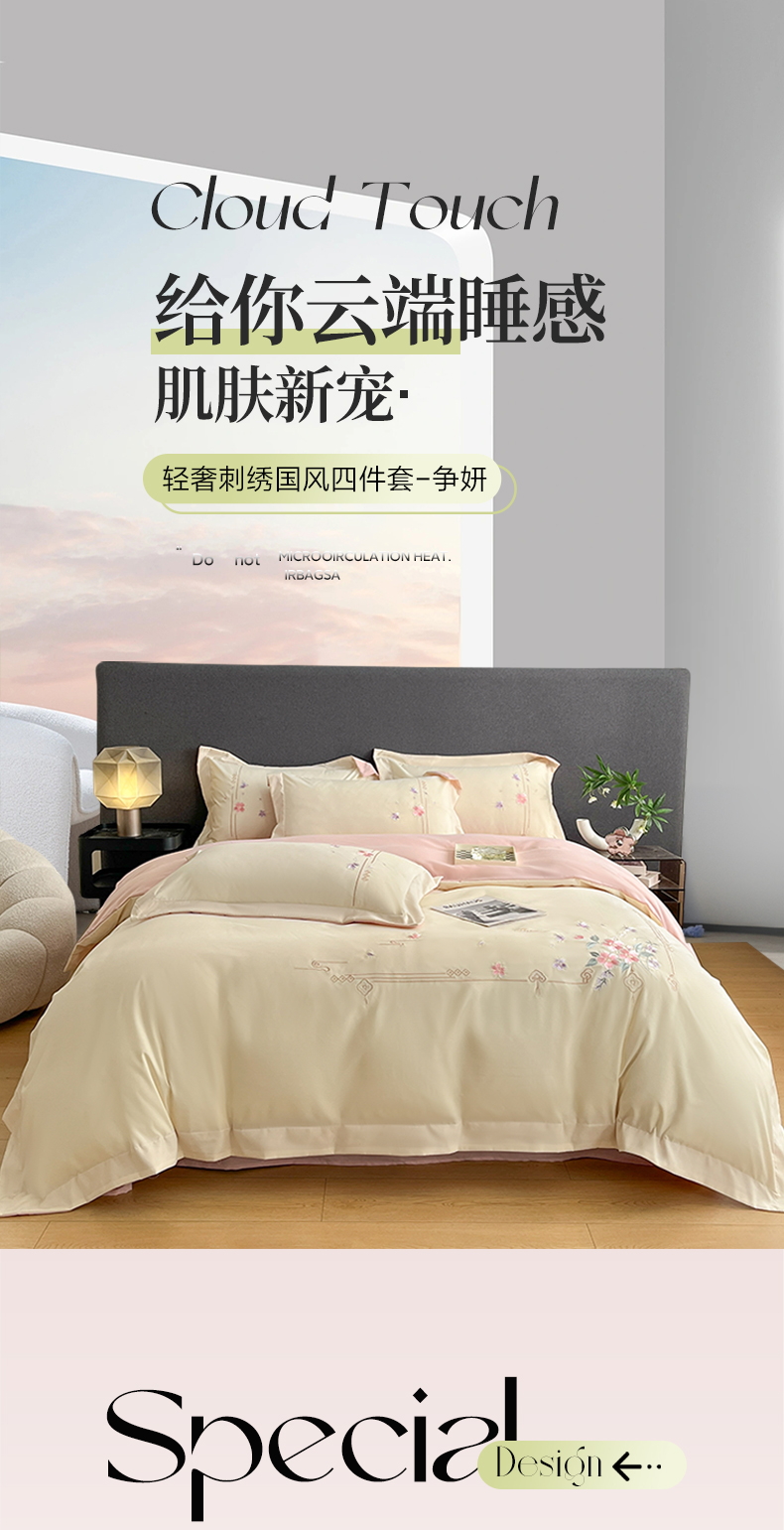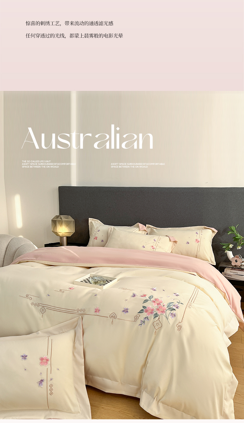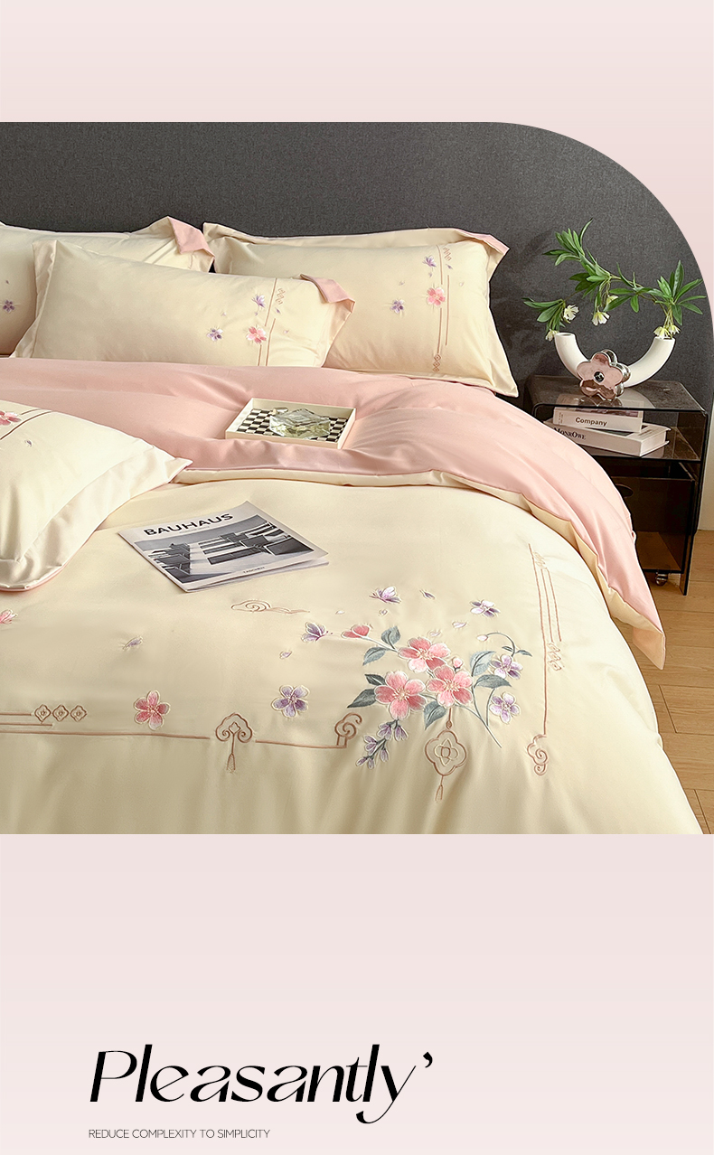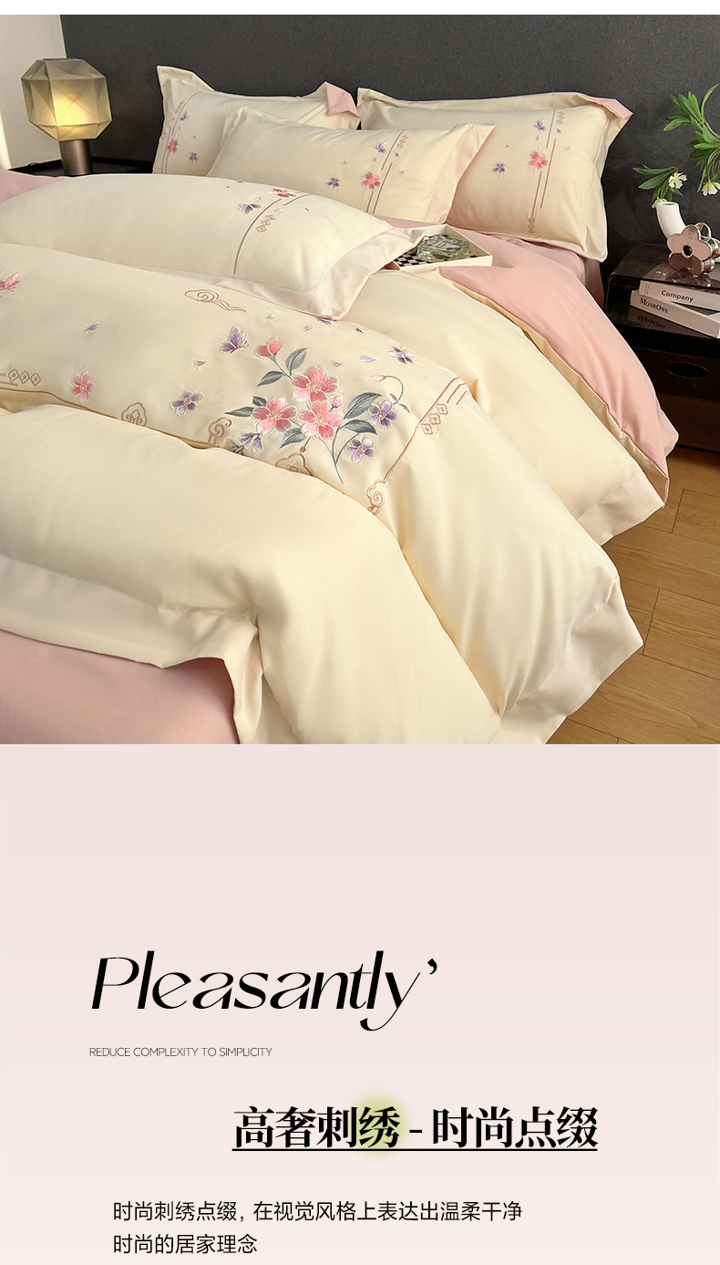 当前位置: 91家纺网 > 商品网购 > 床品套件 > 四件套 > 化纤普通四件套 > 青柚 2026新款轻奢刺绣国风四件套-争妍 争妍-白粉
