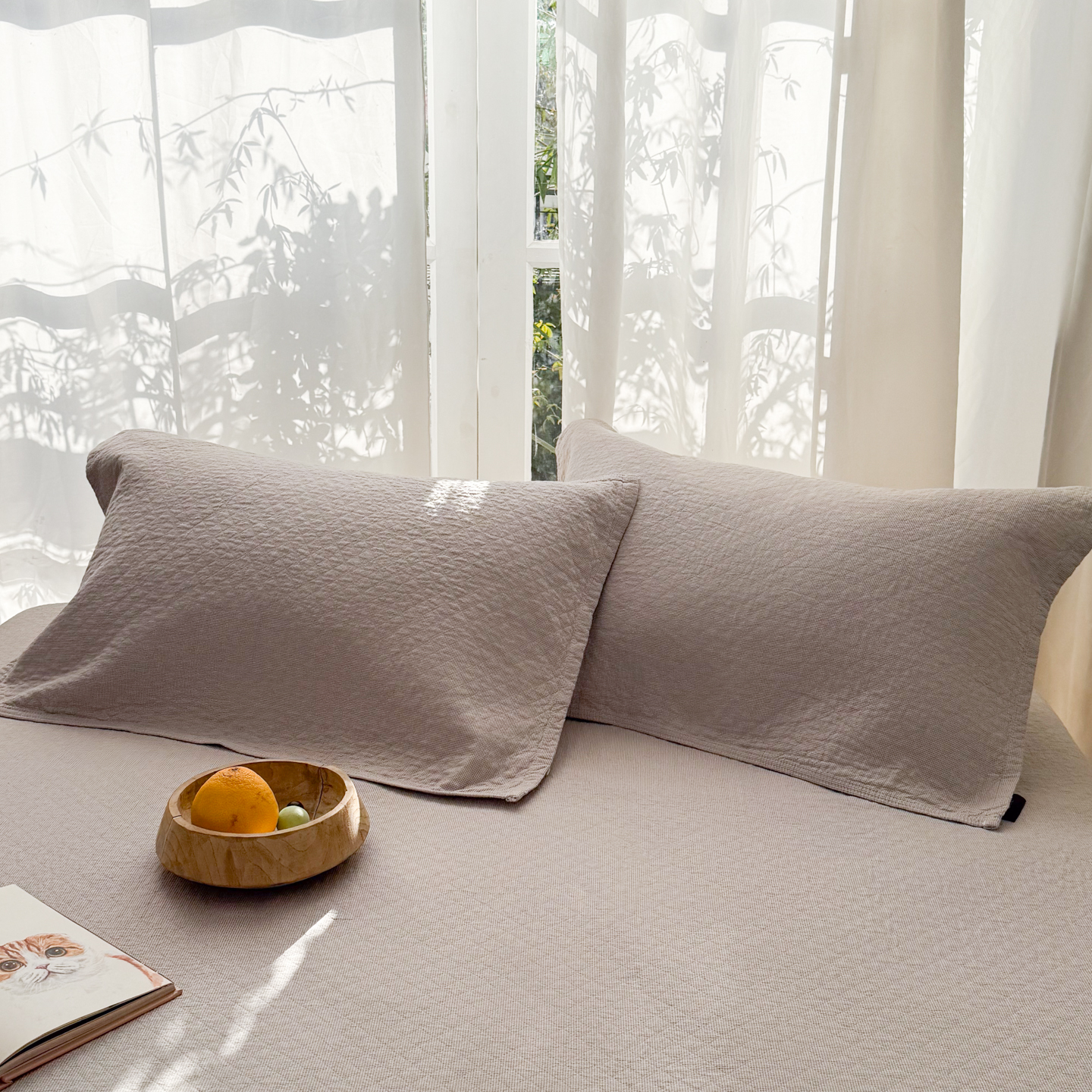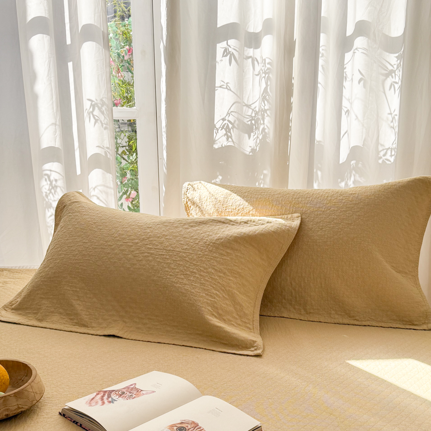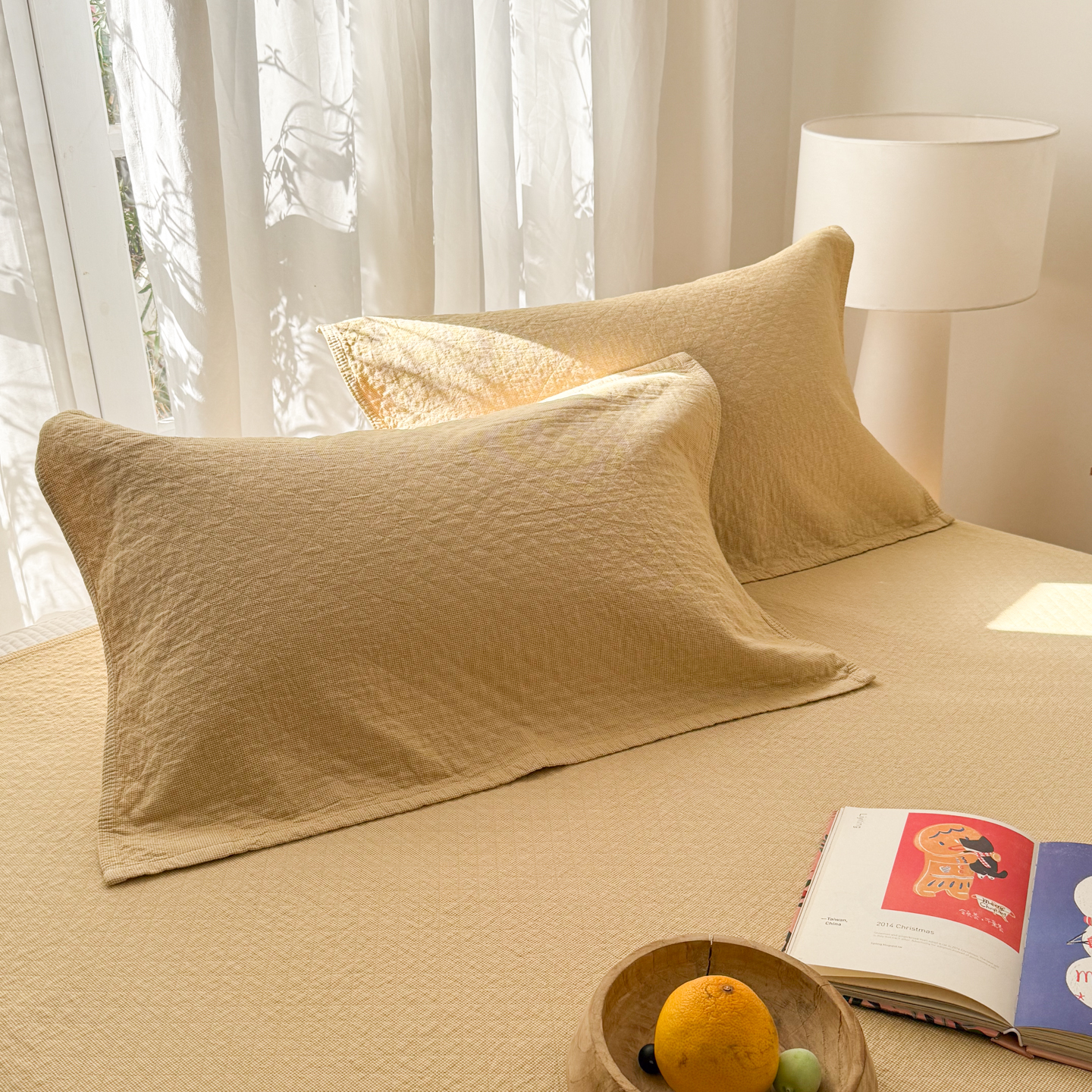 (总)沐瑟家纺 2025新款简约风多功能纱布盖毯纱布毯子毛巾被床盖沙发巾单毯枕巾枕套三件套,H本色,H橙色,H咖色,大马士革本色