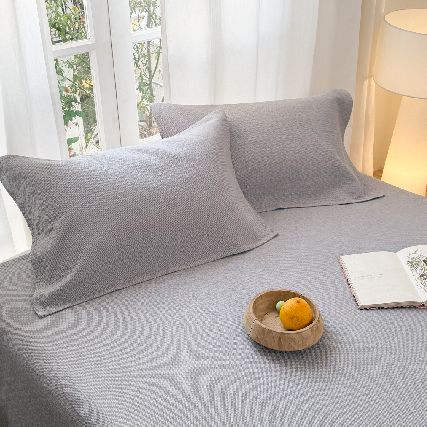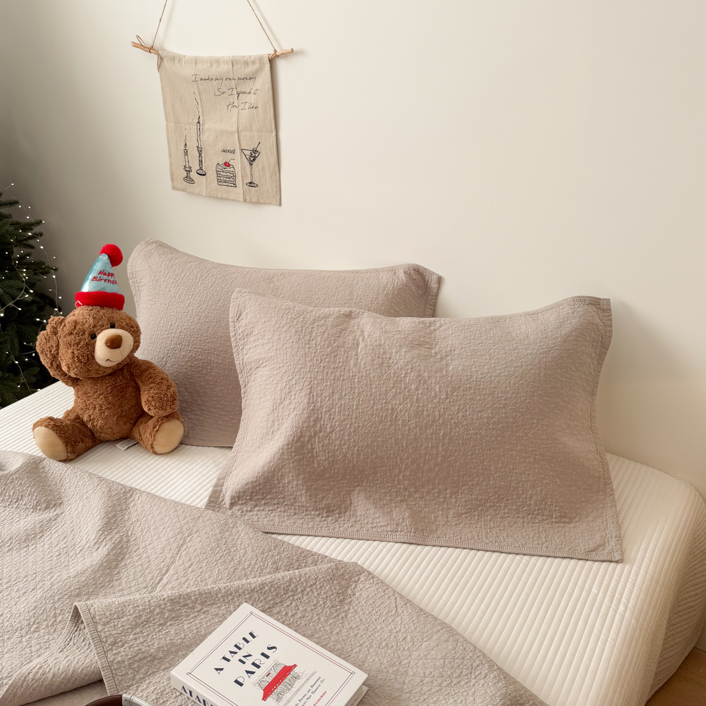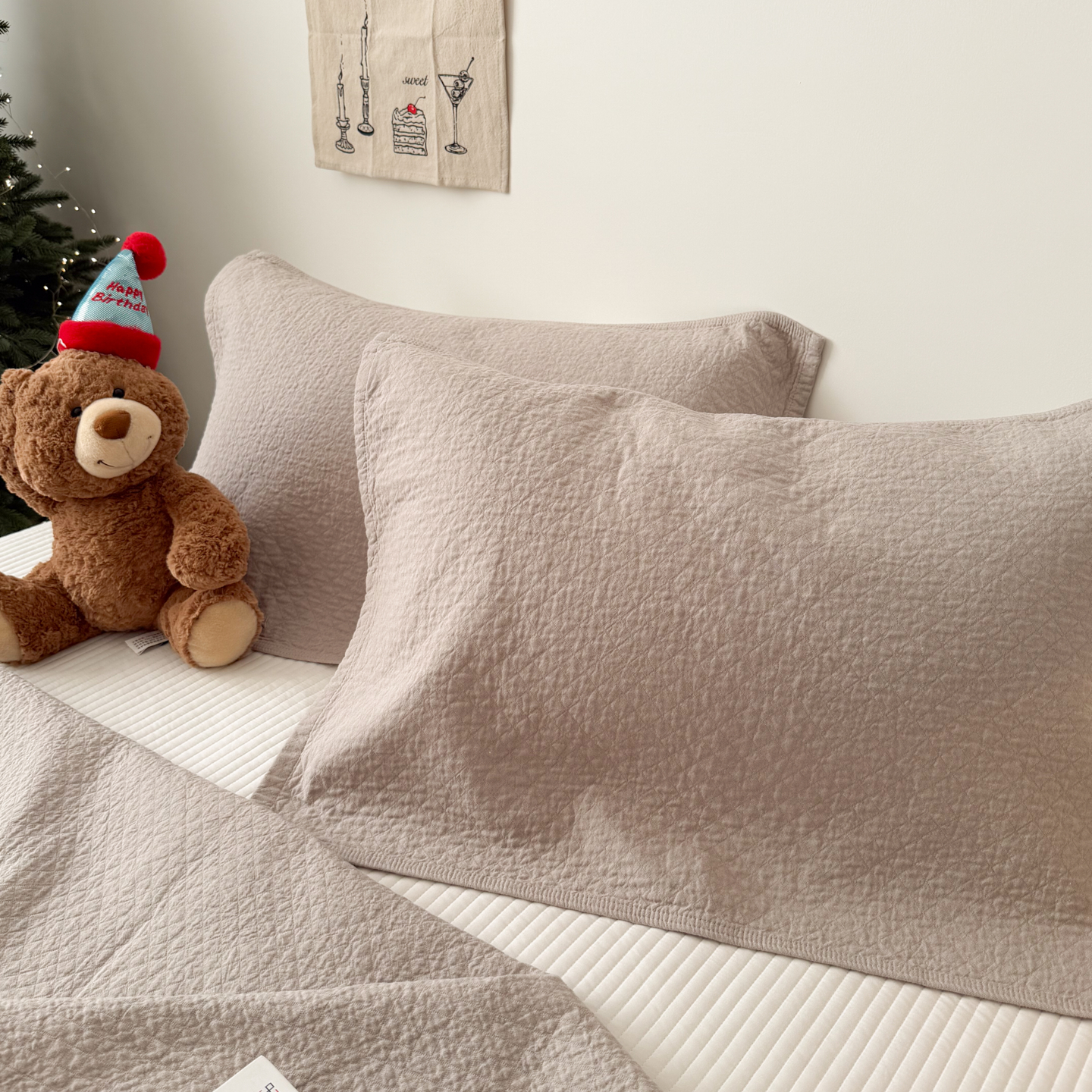 (总)沐瑟家纺 2025新款简约风多功能纱布盖毯纱布毯子毛巾被床盖沙发巾单毯枕巾枕套三件套,H本色,H橙色,H咖色,大马士革本色