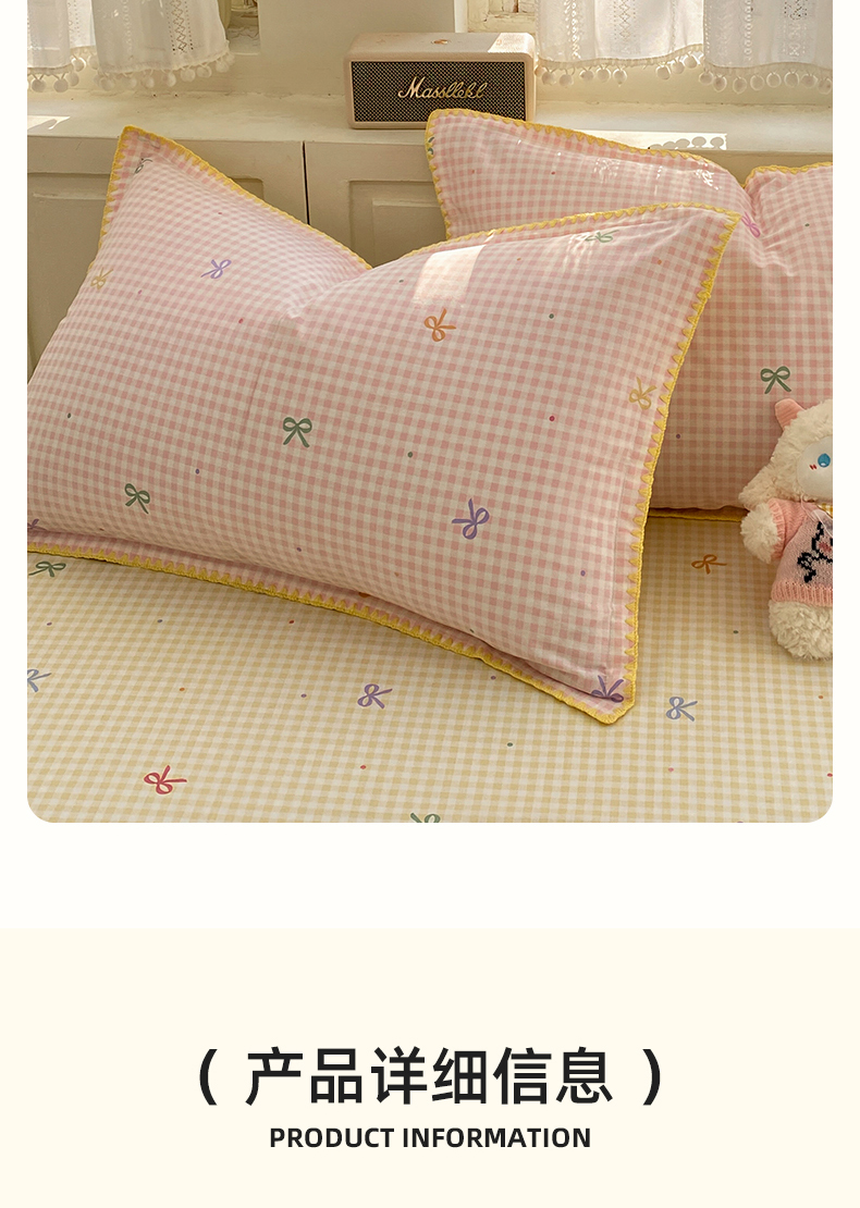 商品名称:浮光家居 2026新款全棉贝壳边纯棉单枕套系列2 夏日恋格粉